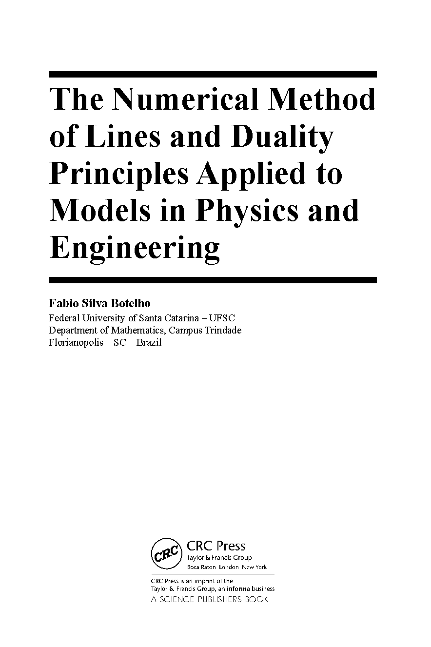 The Numerical Method of Lines and Duality Principles Applied to Models in Physics and Engineering by Fabio Silva Botelho (1st Edition)