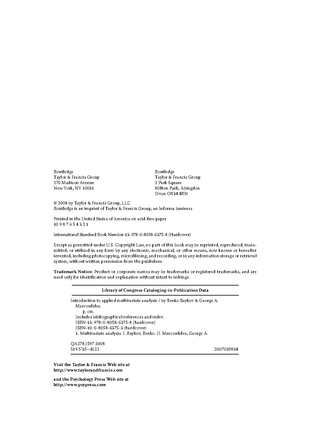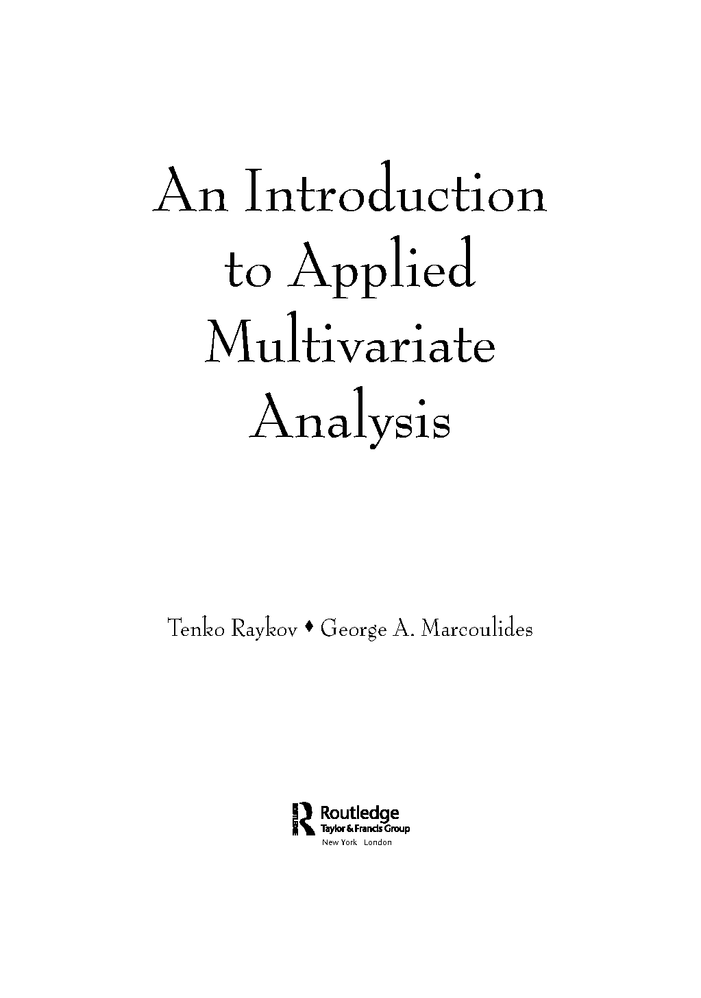 An Introduction to Applied Multivariate Analysis, 1st Edition by Tenko Raykov and George A. Marcoulides