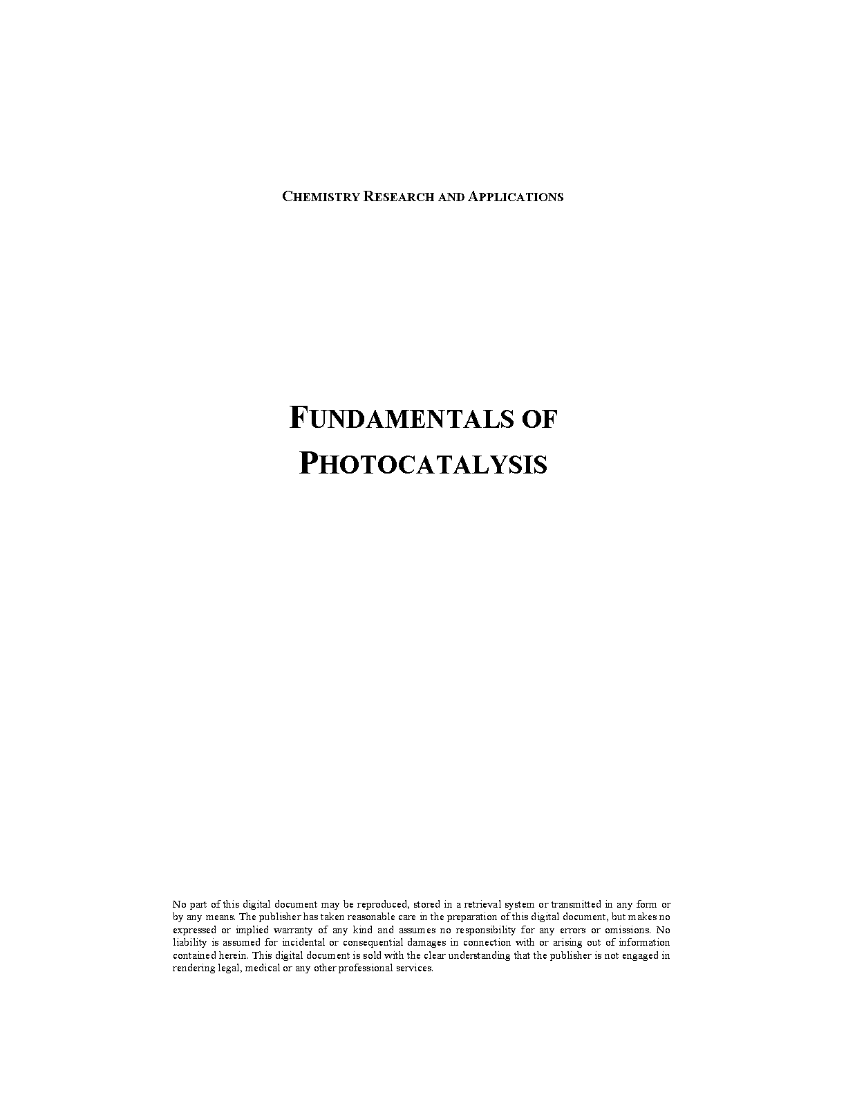 Fundamentals of Photocatalysis: Chemistry Research and Applications (1st Edition) by Orva Auger