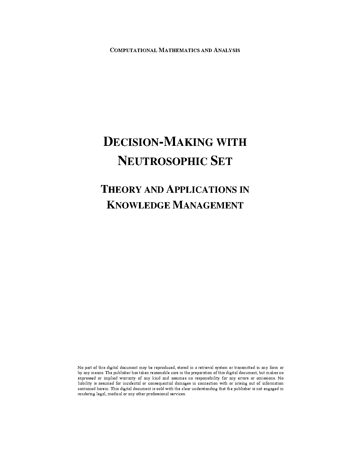 Decision-Making with Neutrosophic Set: Theory and Applications in Knowledge Management (Edited by Harish Garg)