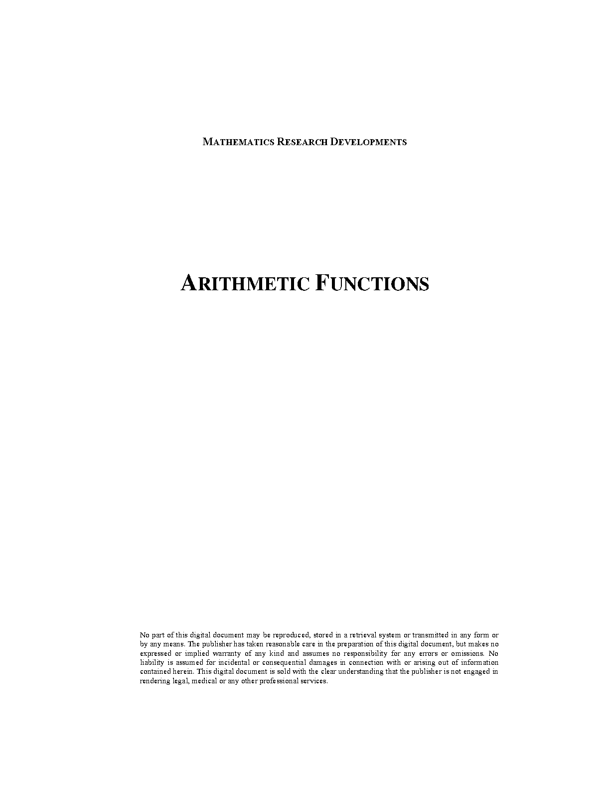 Dive into the world of number theory with this comprehensive guide to arithmetic functions. This book provides a thorough exploration of various arithmetic functions, their properties, and applications. Perfect for students and researchers in mathematics.
