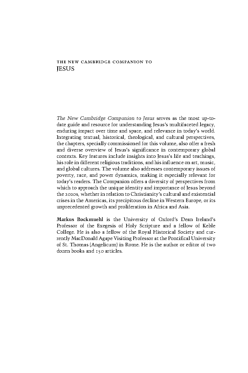 The New Cambridge Companion to Jesus - Edited by Markus Bockmuehl