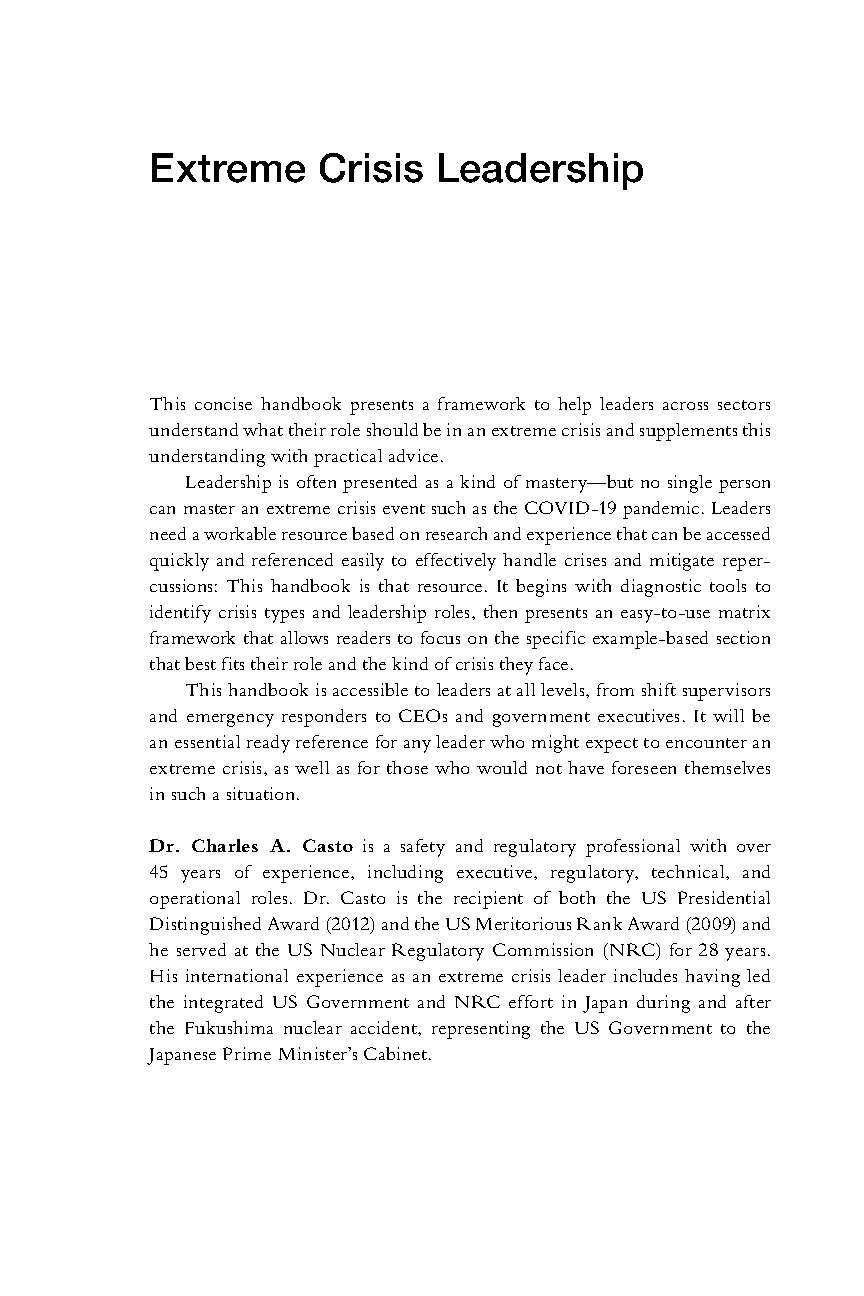 Extreme Crisis Leadership: A Handbook for Leading Through the Unpredictable by Charles A. Casto (First Edition)