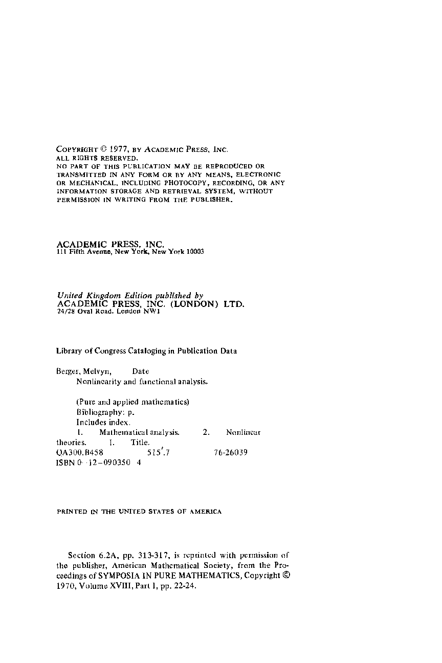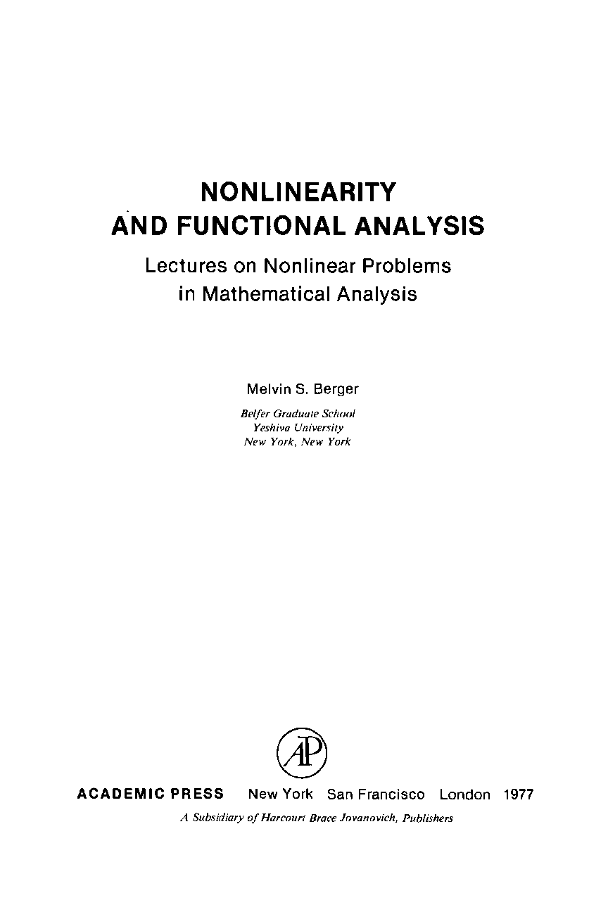 Nonlinearity and Functional Analysis: Lectures on Nonlinear Problems in Mathematical Analysis by Melvin S. Berger (1977 Edition)