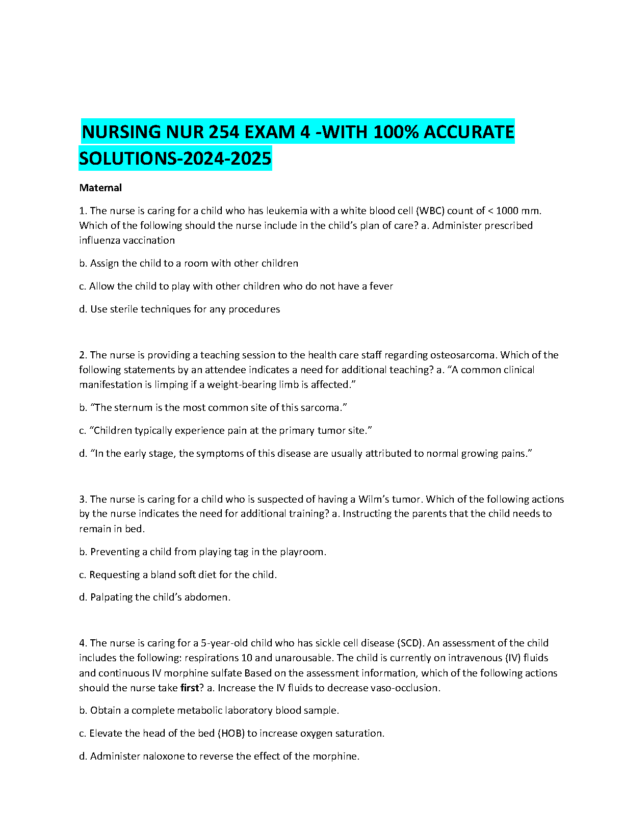 Ace your NURSING NUR 254 Exam 4 with our comprehensive solutions for the 2024-2025 academic year. These accurate answers will boost your understanding and help you avoid resits.
