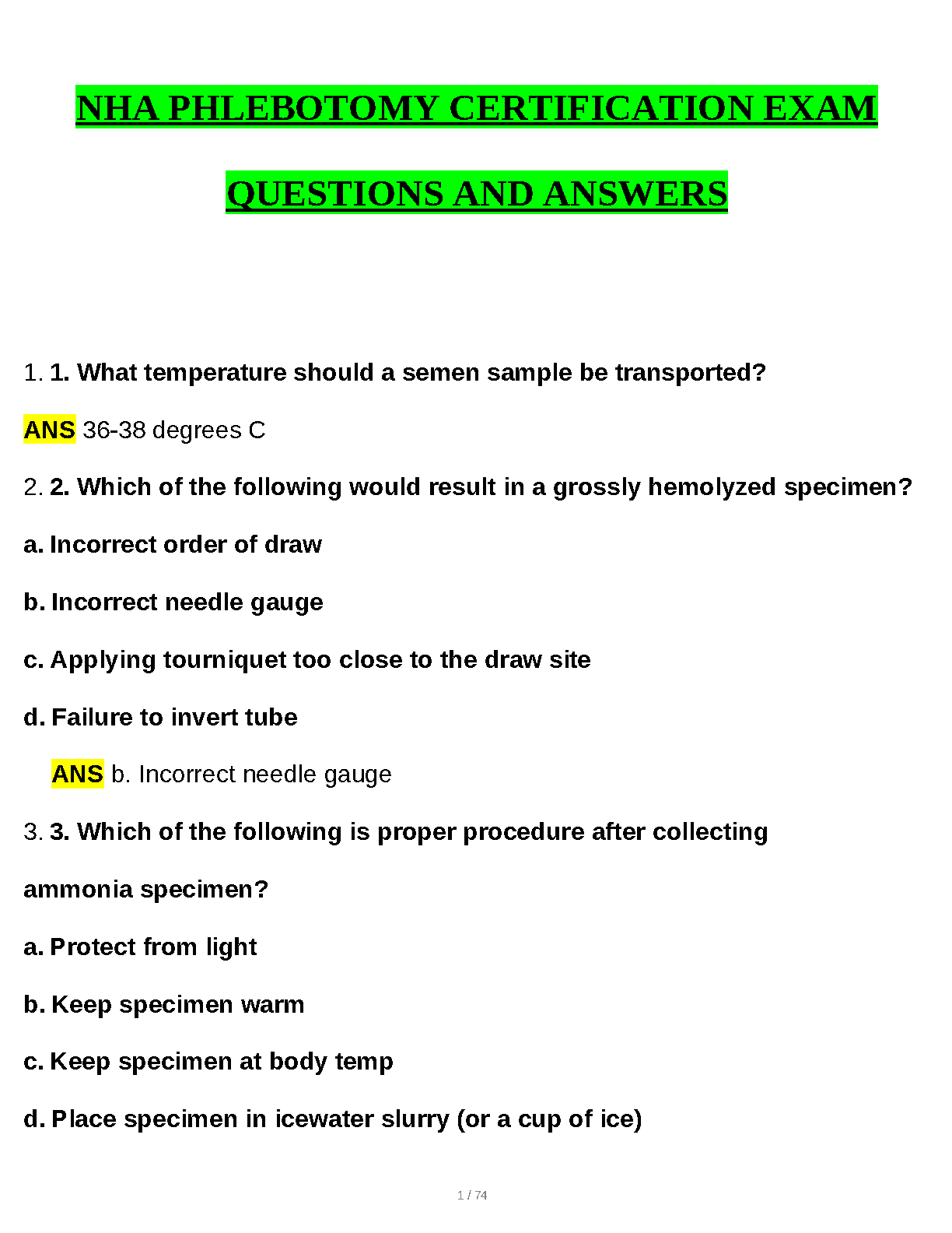 Prepare for the NHA Phlebotomy Certification exam with confidence using this comprehensive question and answer resource. Designed for students aiming to pass their exams on the first try and avoid resits, this study guide covers key concepts and ensures exam readiness.