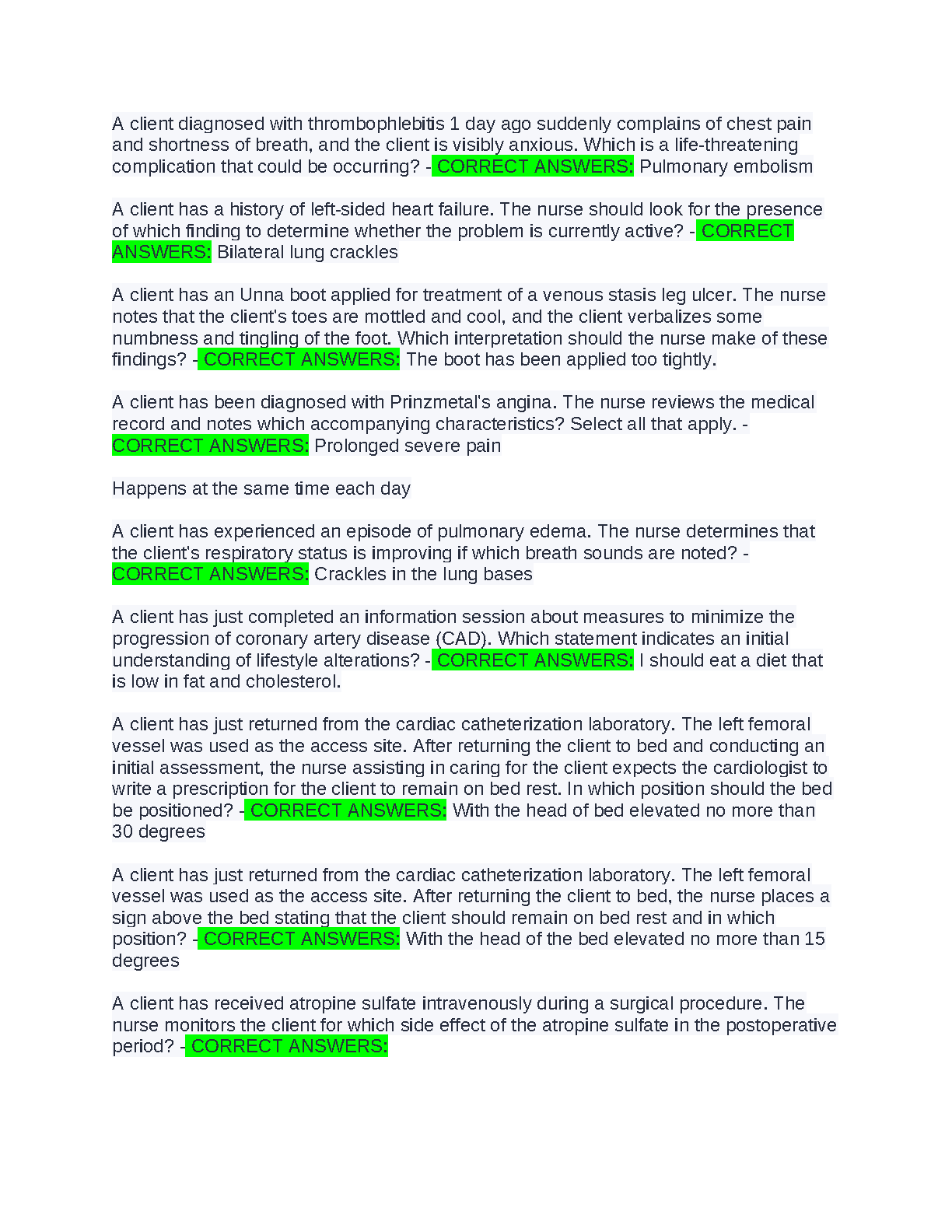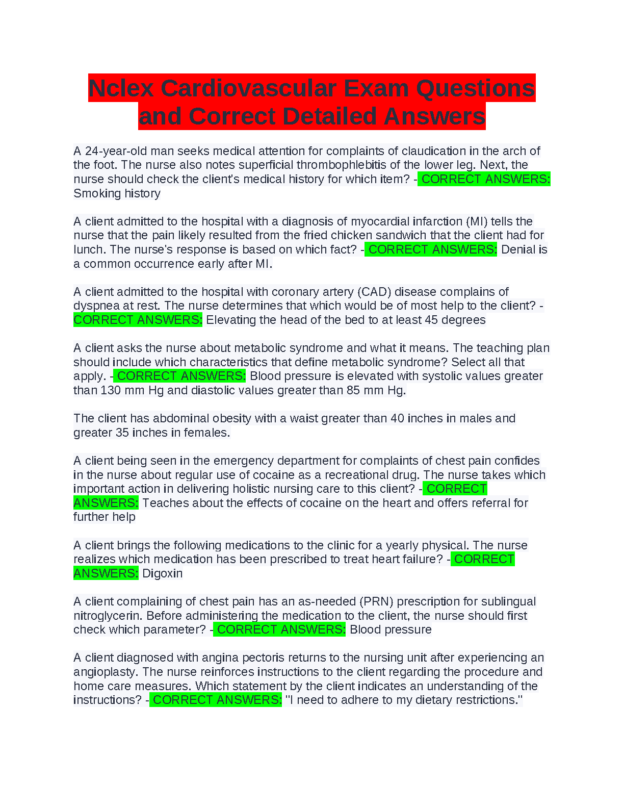 NCLEX Cardiovascular Exam Questions and Correct Detailed Answers by Unknown Authors (2024/2025 Edition)