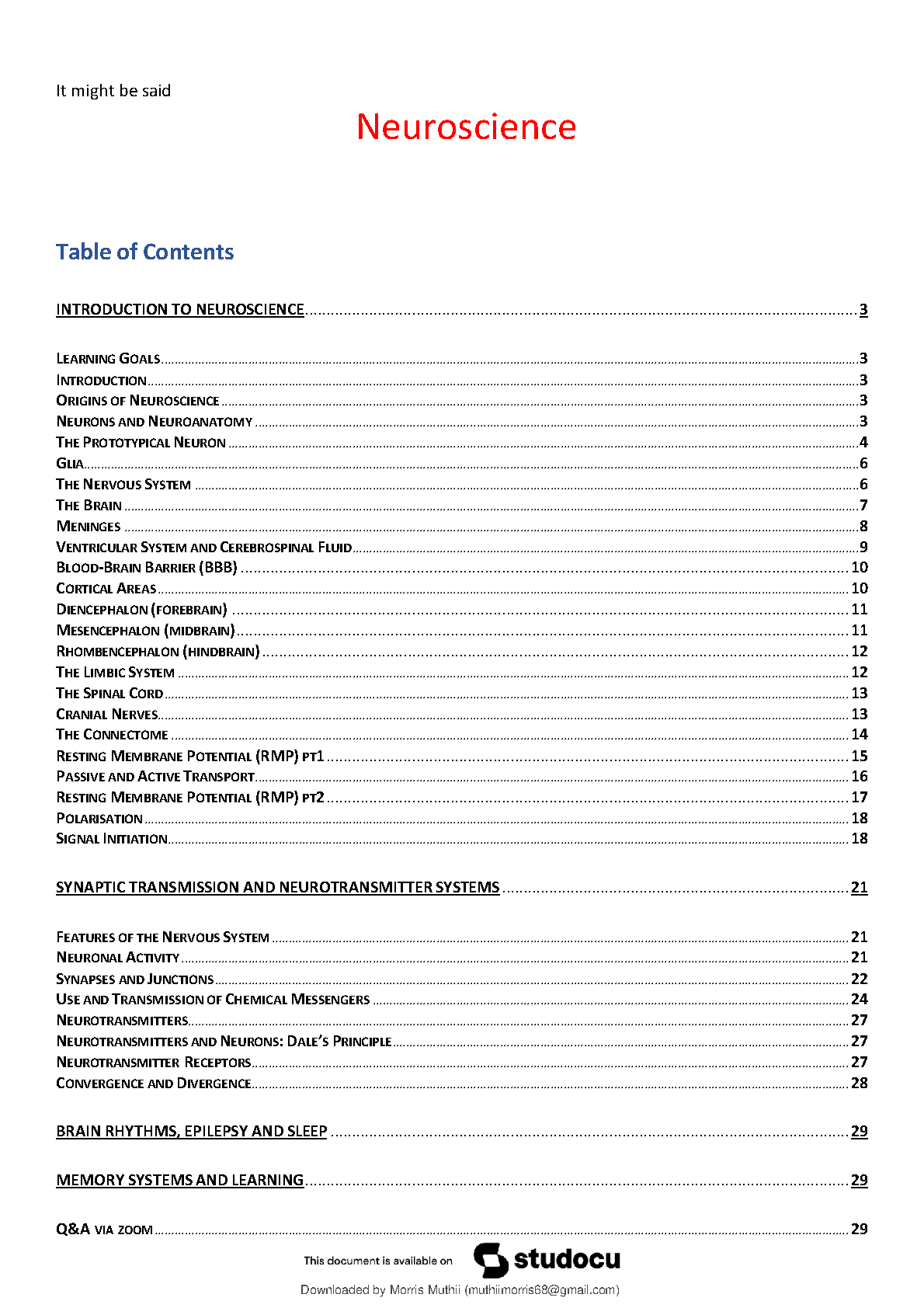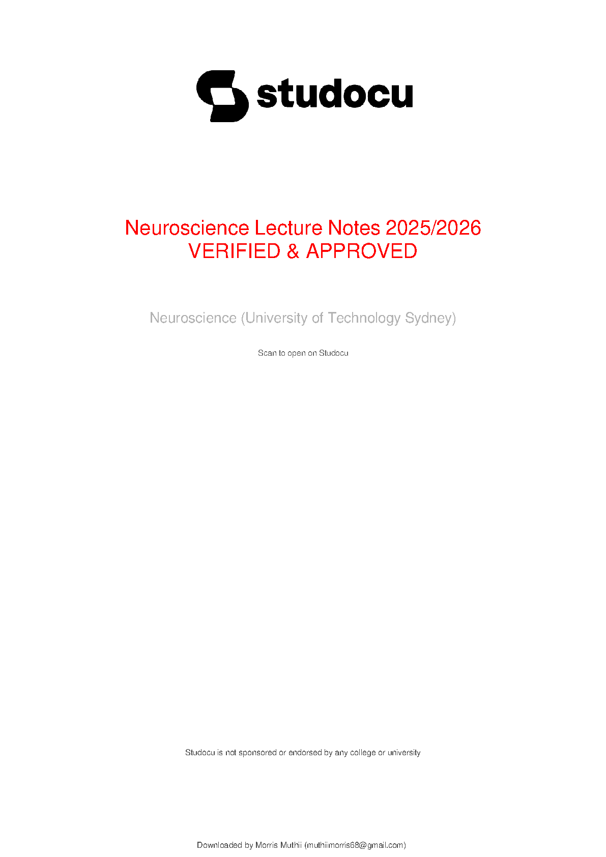 Verified and approved Neuroscience lecture notes from the University of Technology Sydney, designed to help you achieve exam success on your first attempt. These comprehensive notes cover all key concepts and are ideal for students aiming for top marks in 2024/2025.