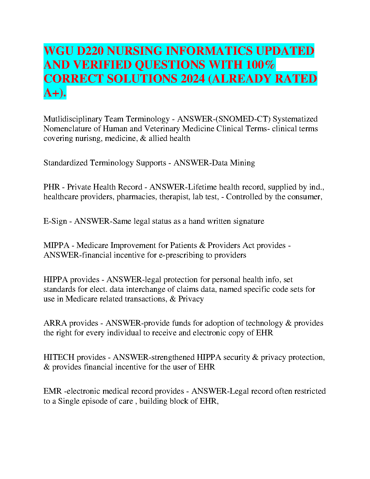 WGU D220 Nursing Informatics Updated and Verified Questions with 100% Correct Solutions 2024-2025 by [Author Name - if available online]