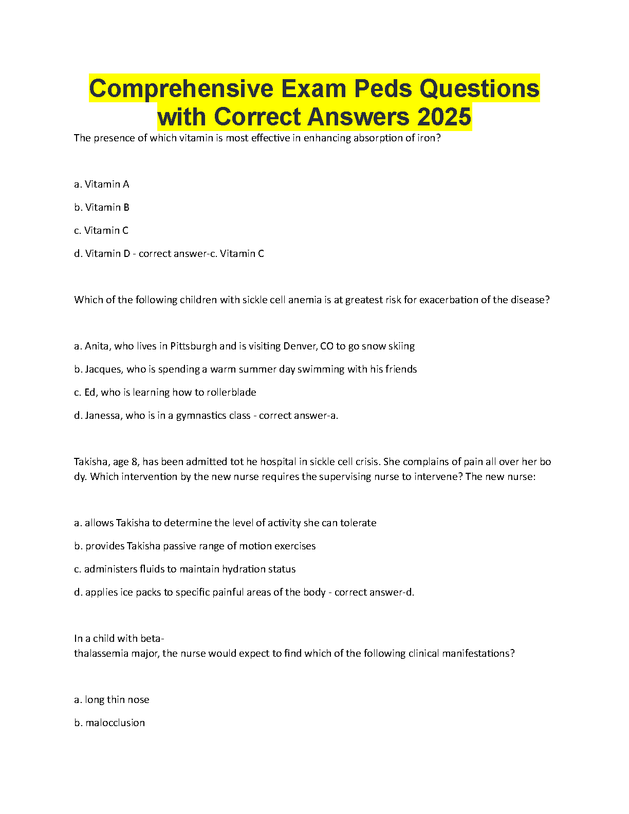 2025 Comprehensive Exam Peds Questions with Correct Answers by Unknown Author