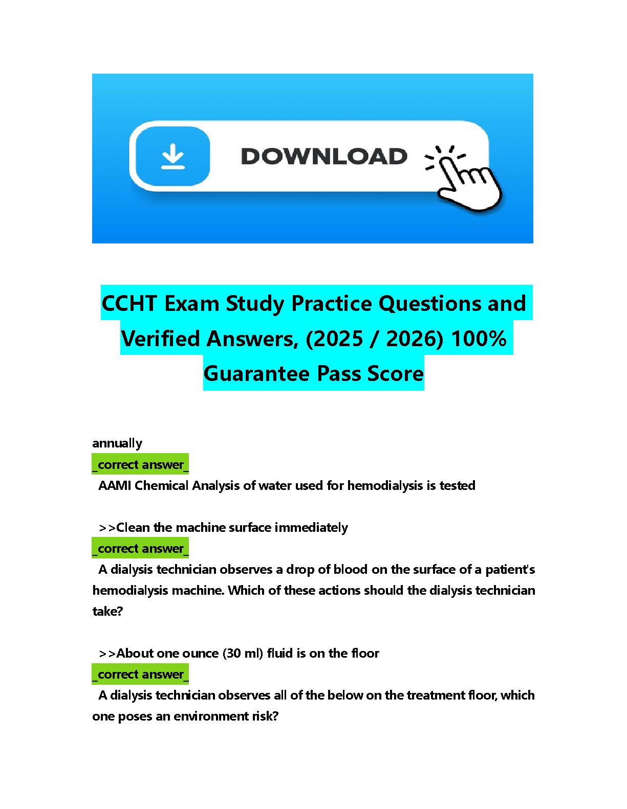 CCHT Exam Study Guide: Practice Questions and Verified Answers (2025/2026 Edition) for Guaranteed Exam Success