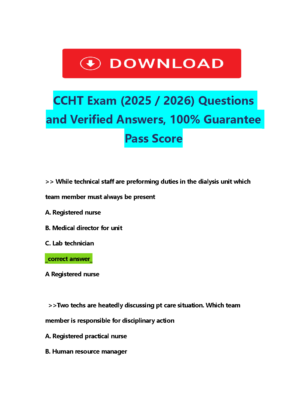 CCHT Exam 2025/2026: Questions and Verified Answers for a Guaranteed Pass Score by [Author Name - if available online]