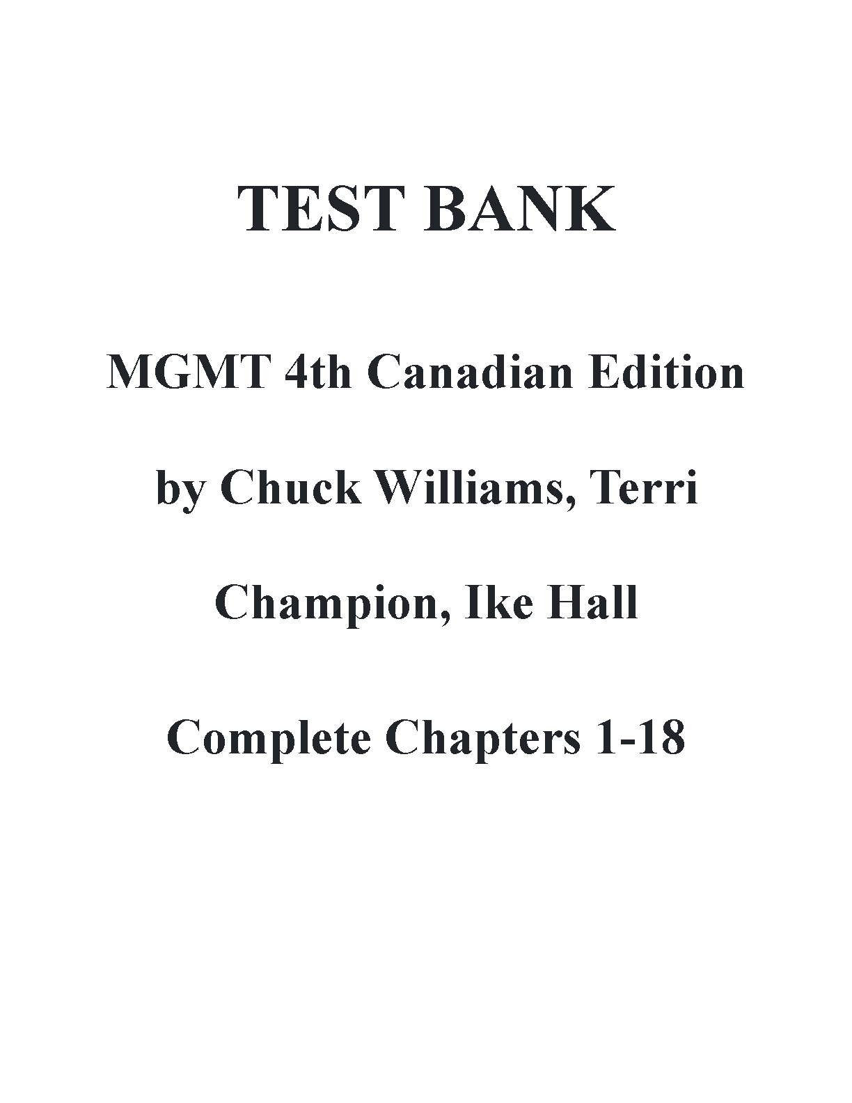 MGMT 4th Canadian Edition Test Bank by Chuck Williams, Terri Champion, and Ike Hall