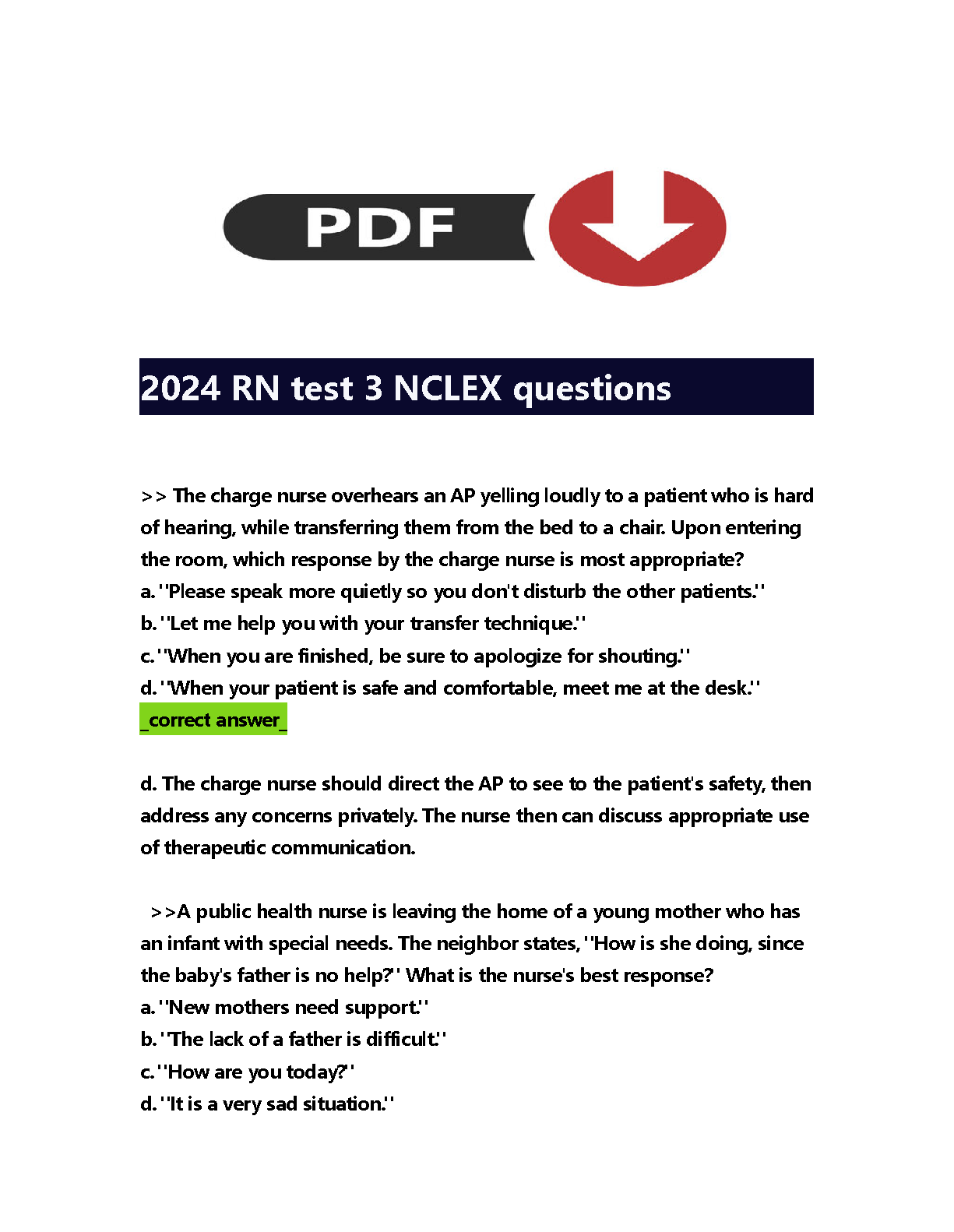 2024 RN Test 3 NCLEX Questions and Answers: A Comprehensive Guide for Success