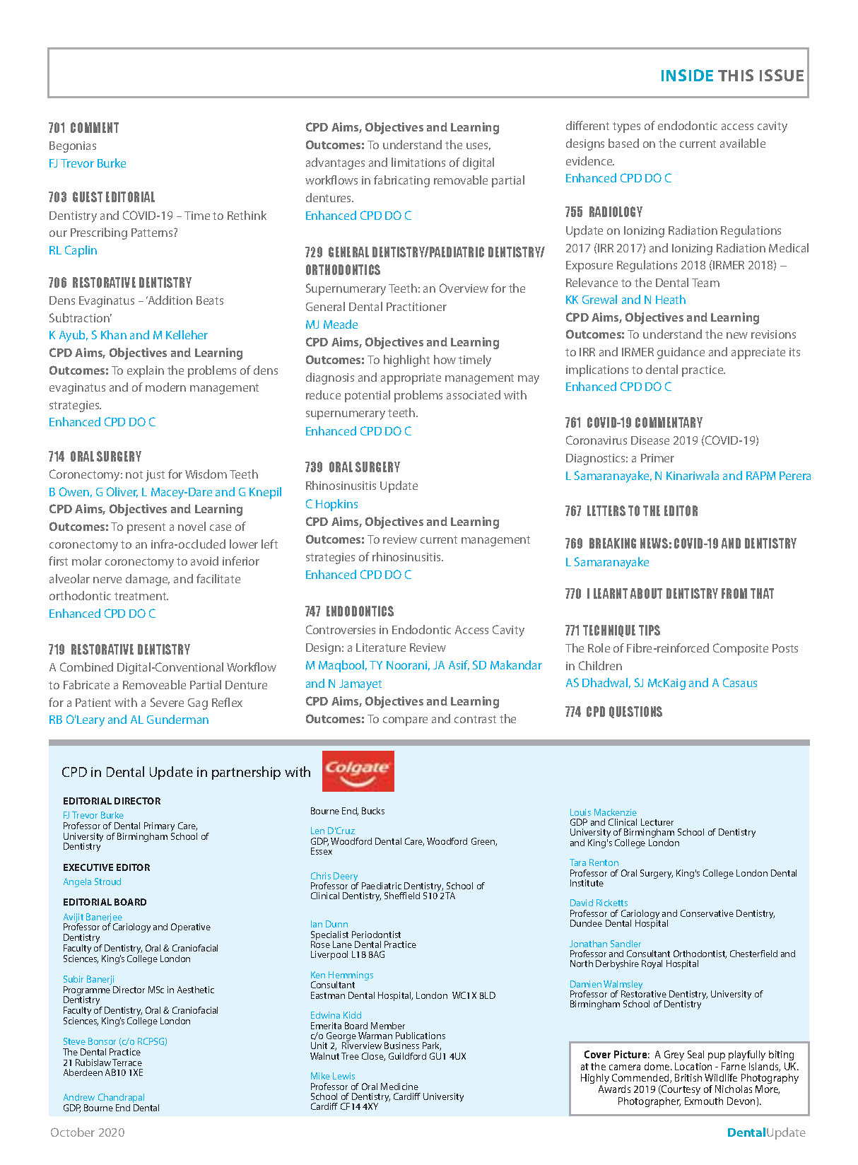 Dental Update Volume 47, Number 9: October 2020 Edition - Restorative Dentistry, Oral Surgery, and Radiology Insights