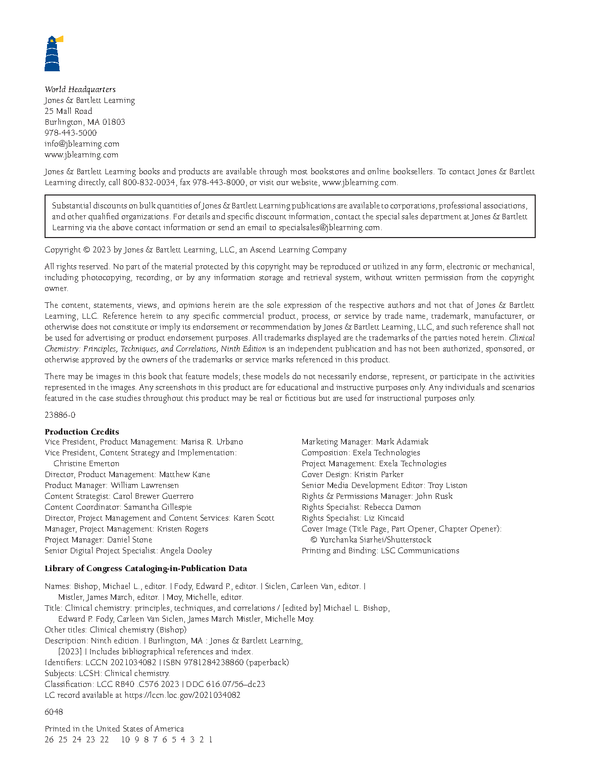 Clinical Chemistry: Principles, Techniques, and Correlations, Ninth Edition by Michael L. Bishop, Edward P. Fody, Carleen Van Siclen, James March Mistler, and Michelle Moy