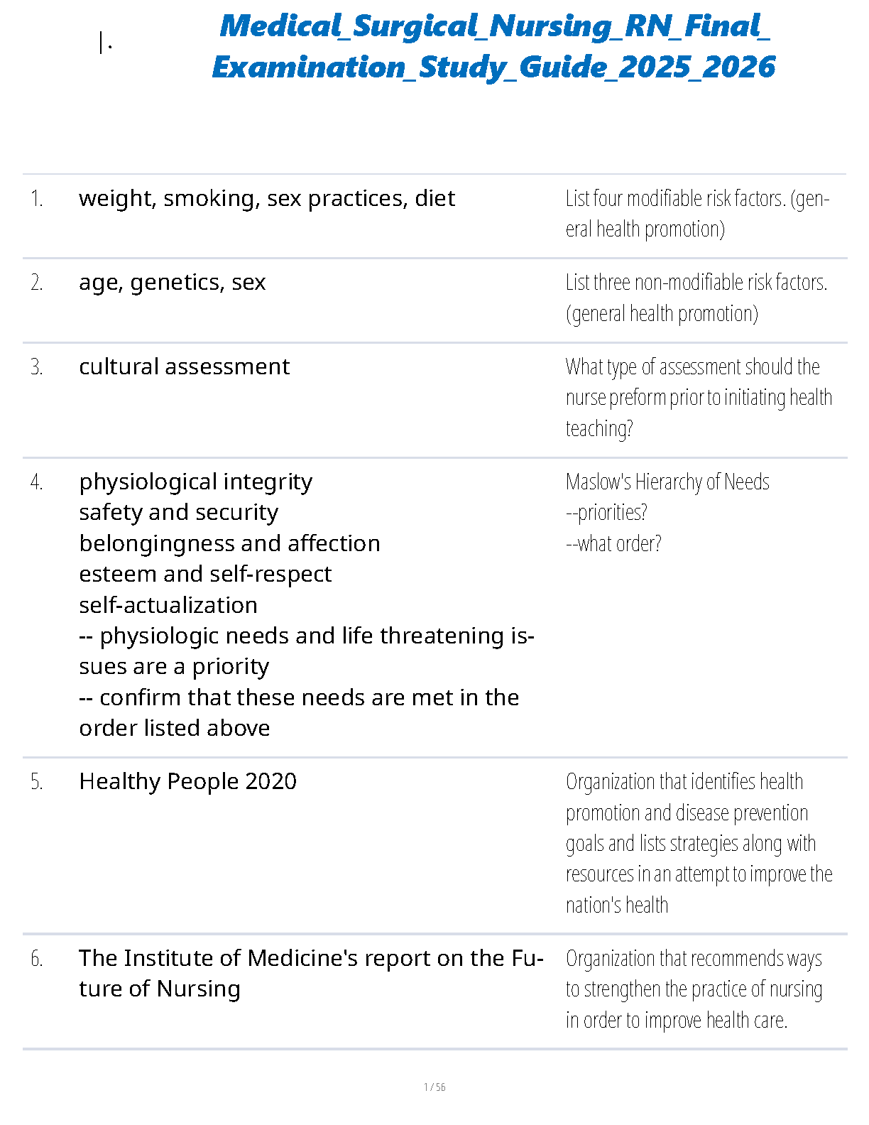 Medical Surgical Nursing RN Final Examination Study Guide 2025-2026 by [Author Names not found]