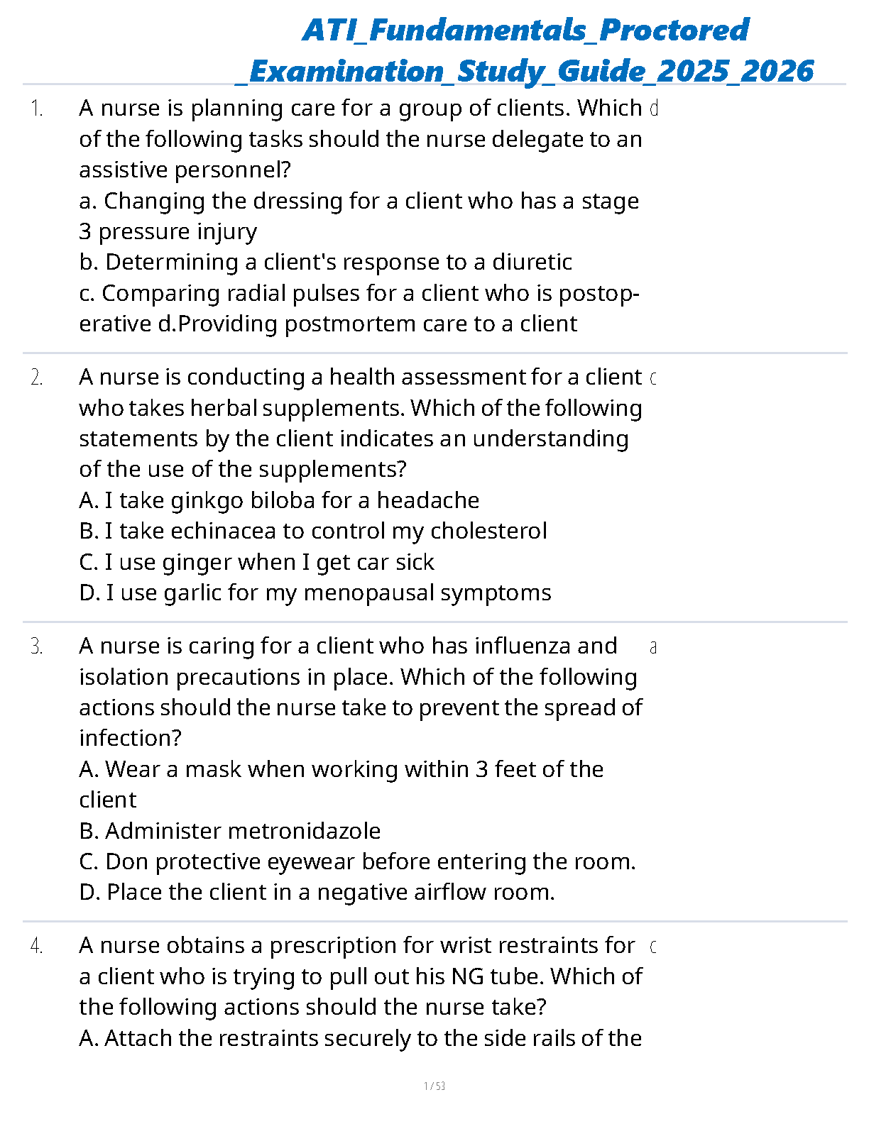 Ace your ATI Fundamentals exam with this comprehensive study guide, designed to help you pass on your first attempt and avoid resits. This resource covers key concepts and practice questions to ensure exam readiness for the 2024-2025 academic year.