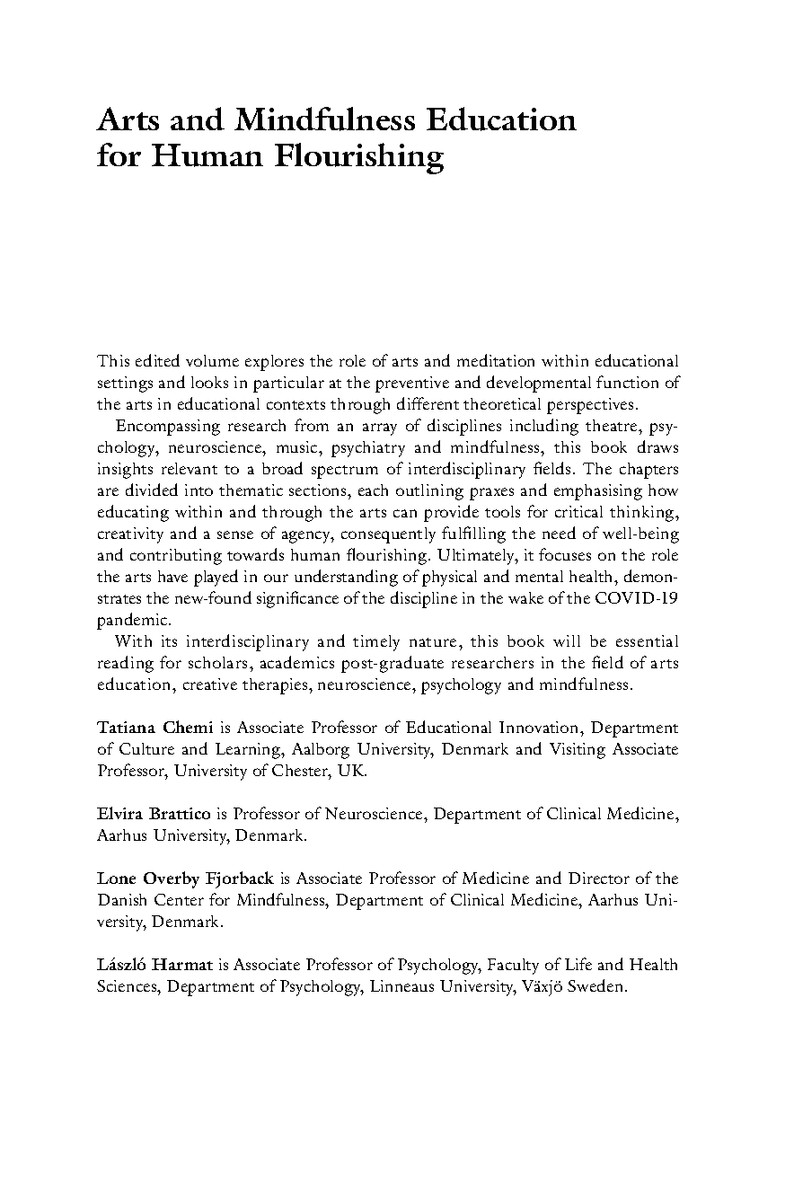 Arts and Mindfulness Education for Human Flourishing: 1st Edition by Tatiana Chemi, Elvira Brattico, Lone Overby Fjorback, and László Harmat