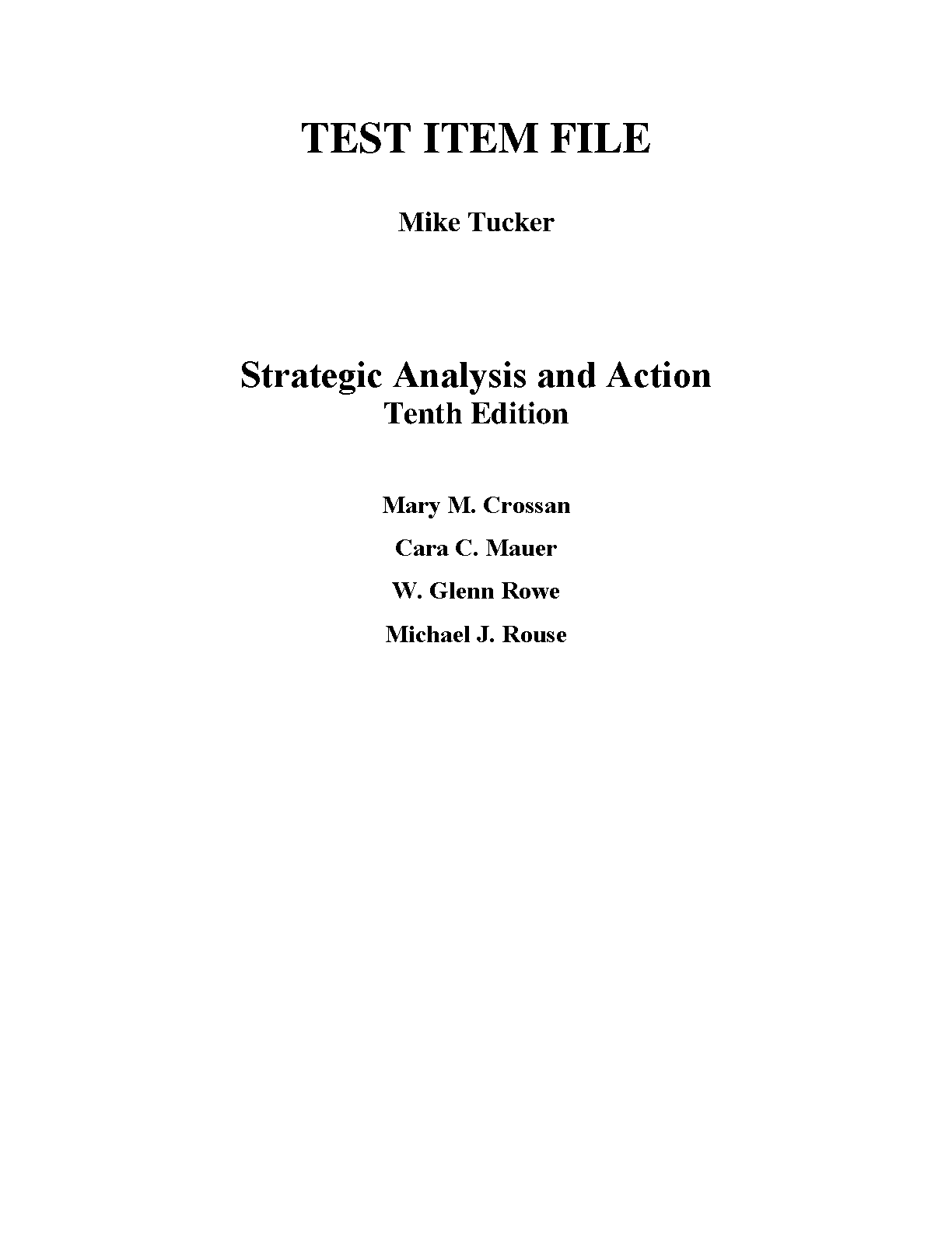 Strategic Analysis and Action, Tenth Edition Test Bank by Mary M. Crossan, Cara C. Mauer, W. Glenn Rowe, and Michael J. Rouse