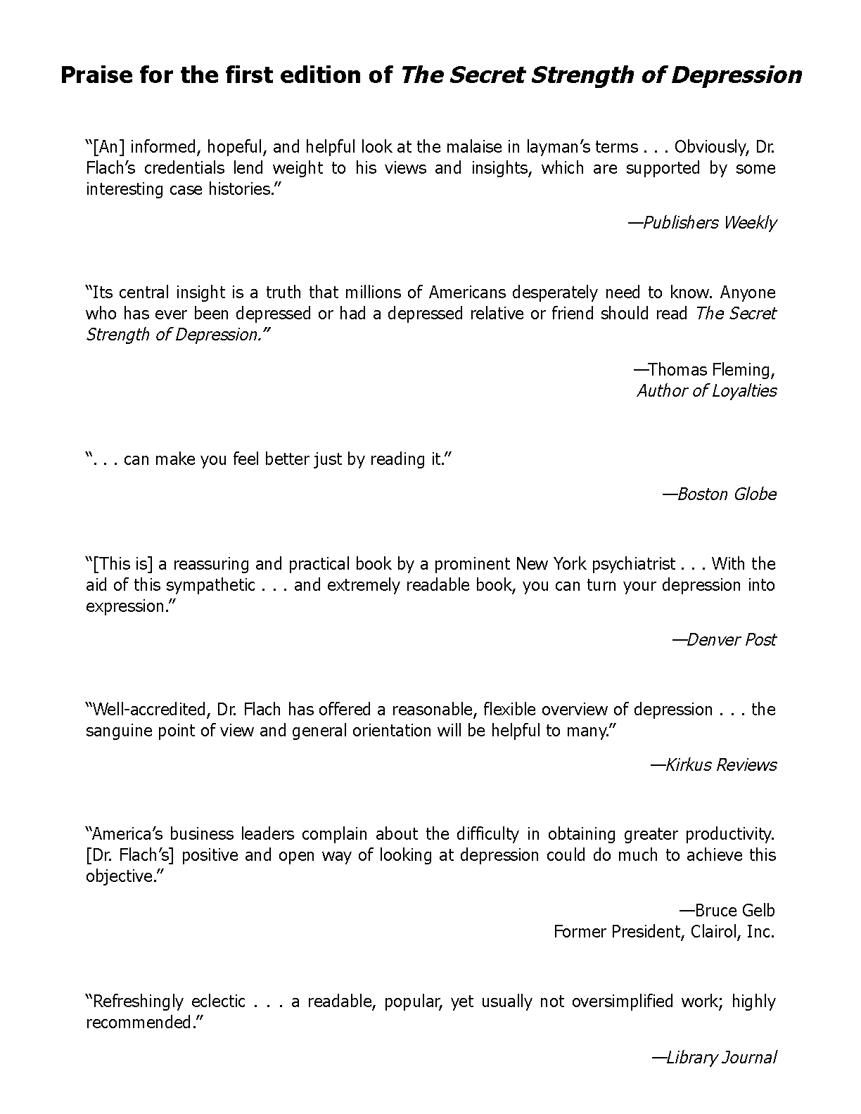 The Secret Strength of Depression: Newly Revised Edition by Frederic Flach, MD, KCHS and Mujeeb U. Shad, MD, MSCS