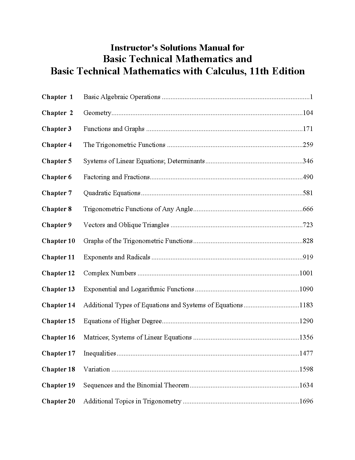 Instructor's Solutions Manual for Basic Technical Mathematics and Basic Technical Mathematics with Calculus, Eleventh Edition by Allyn J. Washington, Richard S. Evans, and Matthew G. Hudelson