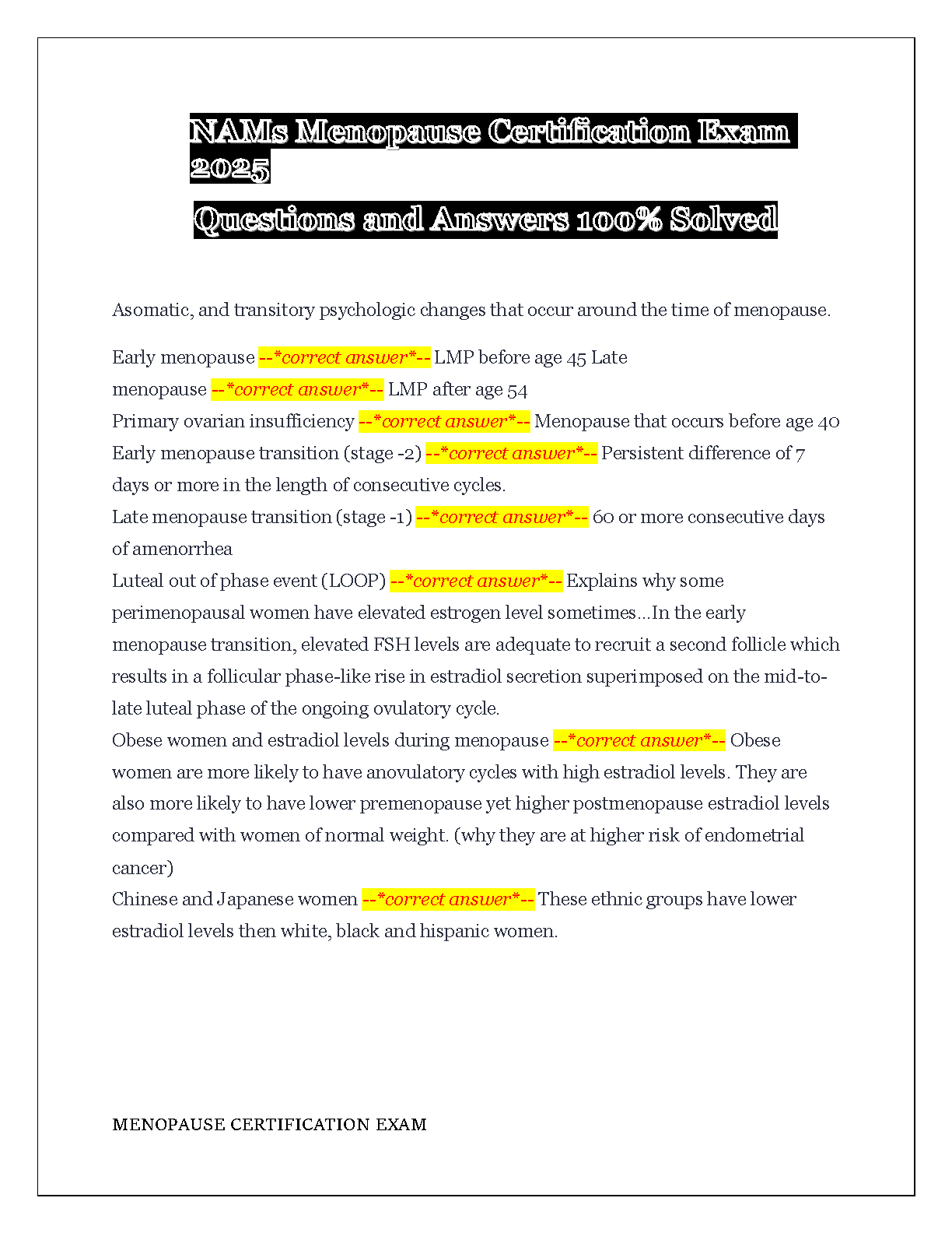 NAMS Menopause Certification Exam 2025 Questions and Answers 100% Solved by [Author Names - If available online, otherwise leave blank]