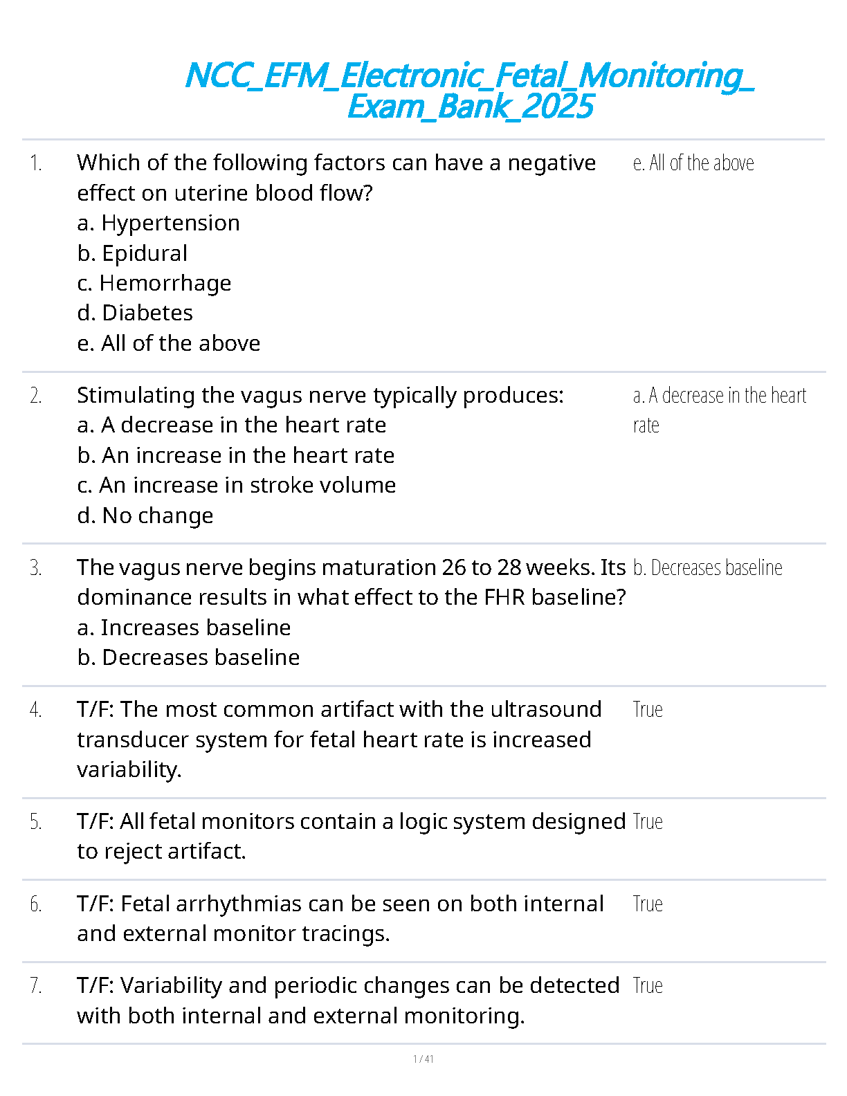 Ace your Electronic Fetal Monitoring exams with this 2025 edition exam bank. This resource is designed to help nursing students master the subject matter and pass their exams on the first attempt, eliminating the need for resits. Prepare effectively and confidently for your assessments.