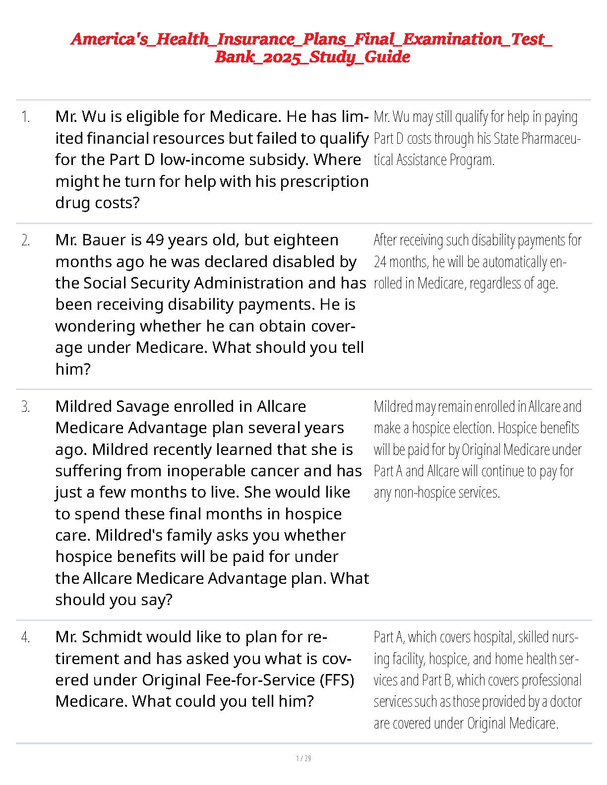 America's Health Insurance Plans Final Examination Test Bank 2025 Study Guide by [Complete Authors' Names to be added]