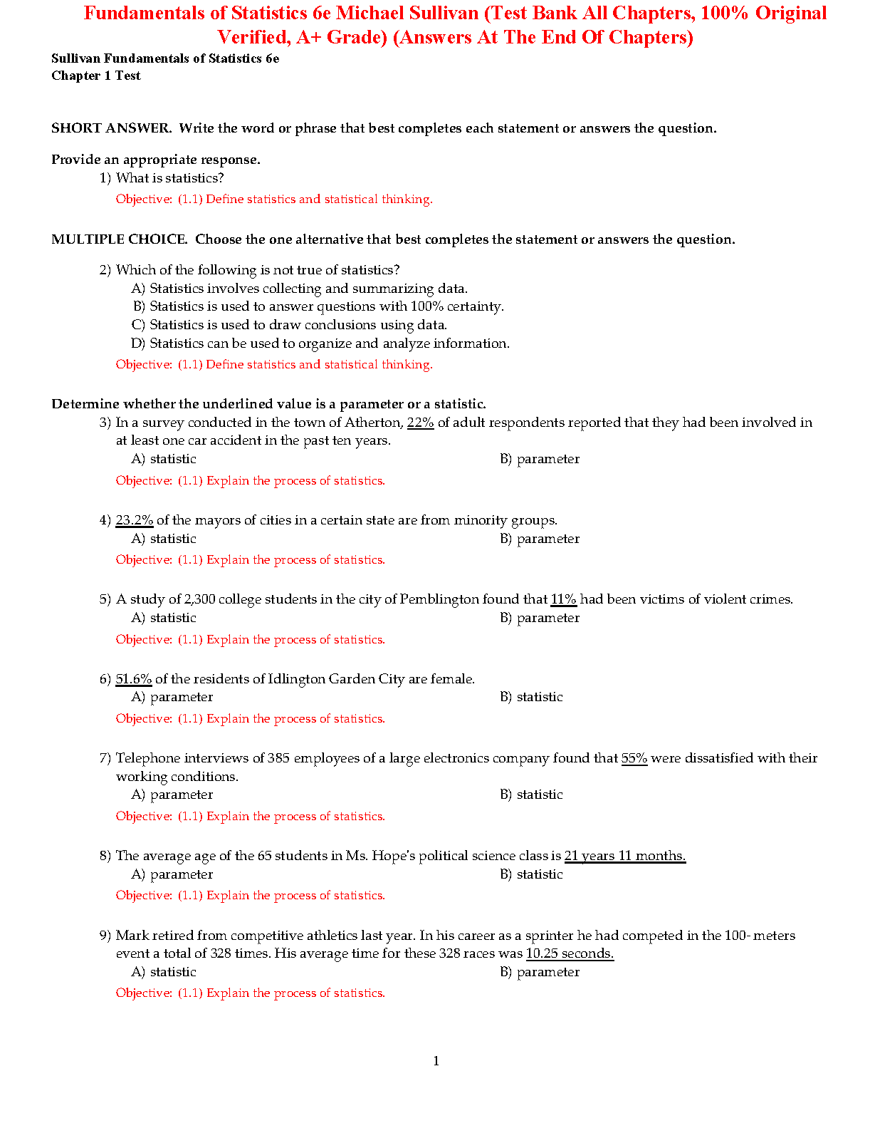 Ace your statistics exams with this comprehensive test bank for Michael Sullivan III's Fundamentals of Statistics, Sixth Edition. This resource provides numerous practice questions and answers, helping you master key concepts and boosting your exam confidence for first-attempt success.