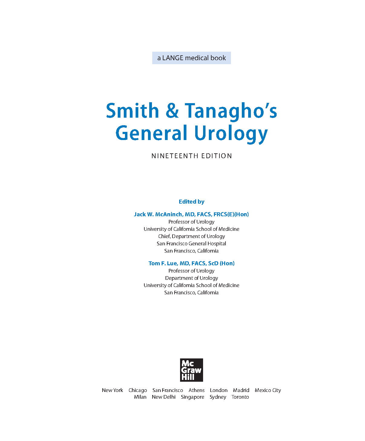 Smith & Tanagho's General Urology, 19th Edition by Jack W. McAninch and Tom F. Lue
