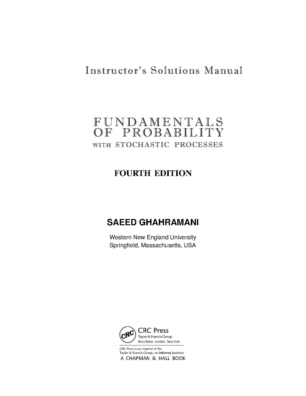 Fundamentals of Probability with Stochastic Processes, Fourth Edition by Saeed Ghahramani: Solutions Manual