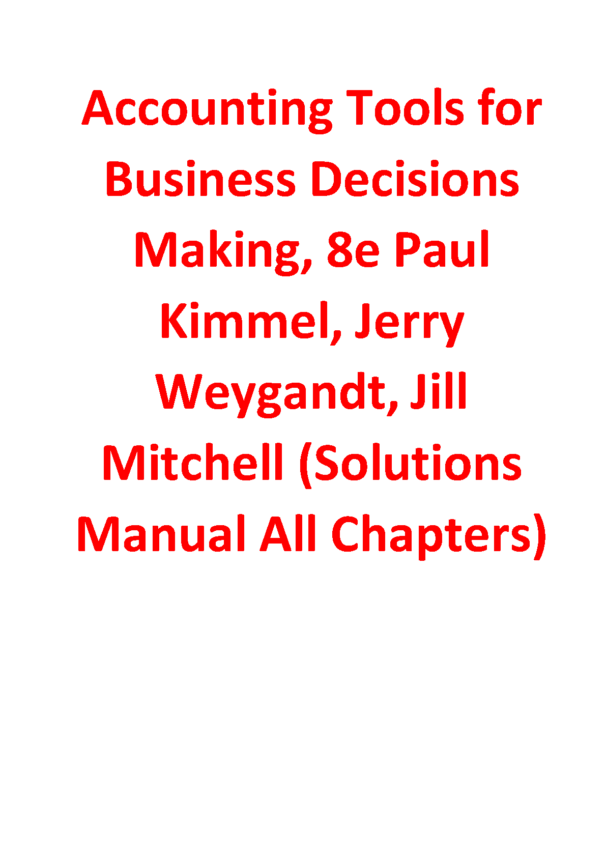 Complete solutions manual for all chapters of Accounting Tools for Business Decisions Making, 8th edition, by Paul Kimmel, Jerry Weygandt, and Jill Mitchell. This resource provides comprehensive answers and explanations to help students master the concepts and ace their exams on the first try.