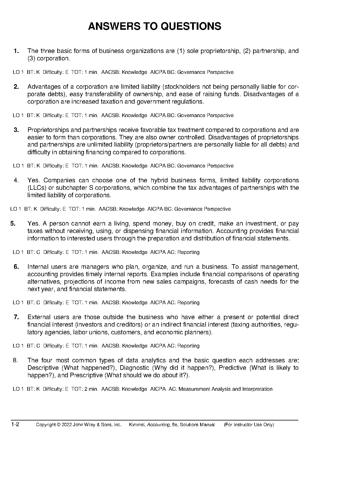 Accounting Tools for Business Decisions Making, 8e by Paul Kimmel, Jerry Weygandt, and Jill Mitchell - Solutions Manual