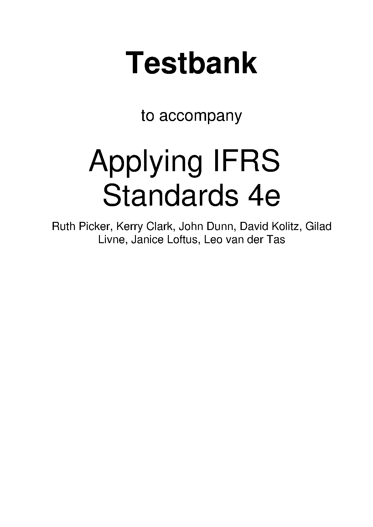 Test Bank for Applying IFRS Standards 4e by Ruth Picker, Kerry Clark, John Dunn, David Kolitz, Gilad Livne, Janice Loftus, and Leo van der Tas