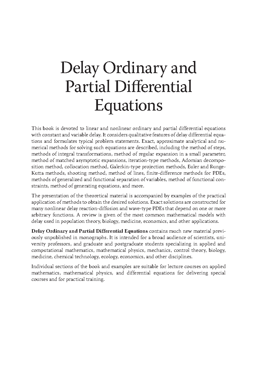 Ace your exams with this comprehensive guide to Delay Ordinary and Partial Differential Equations. Master the subject and avoid resits with this newly released resource perfect for the 2024-2025 academic year.