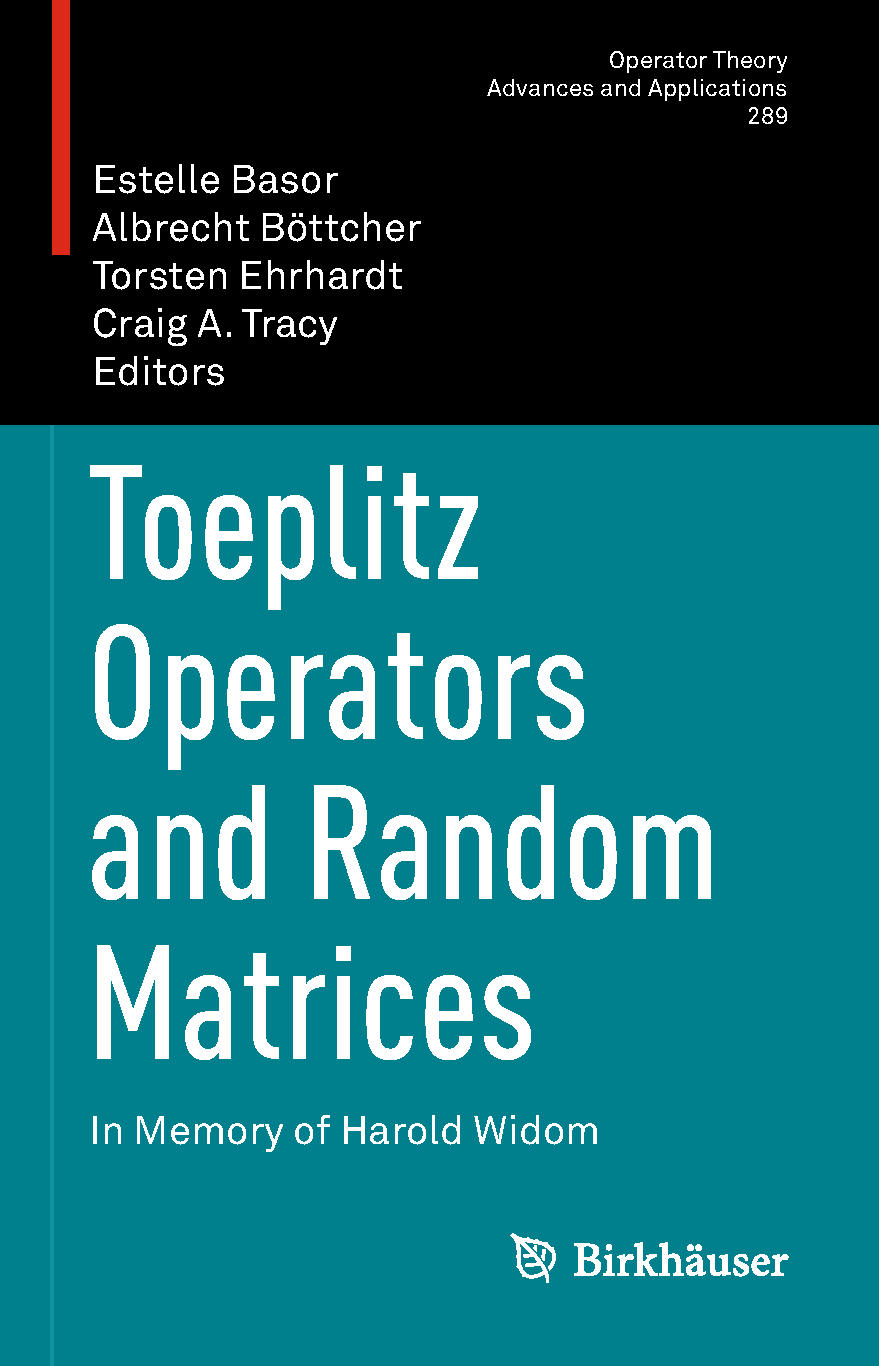 Toeplitz Operators and Random Matrices: Operator Theory Advances and Applications, 289, by Estelle Basor, Albrecht Böttcher, Torsten Ehrhardt, and Craig A. Tracy
