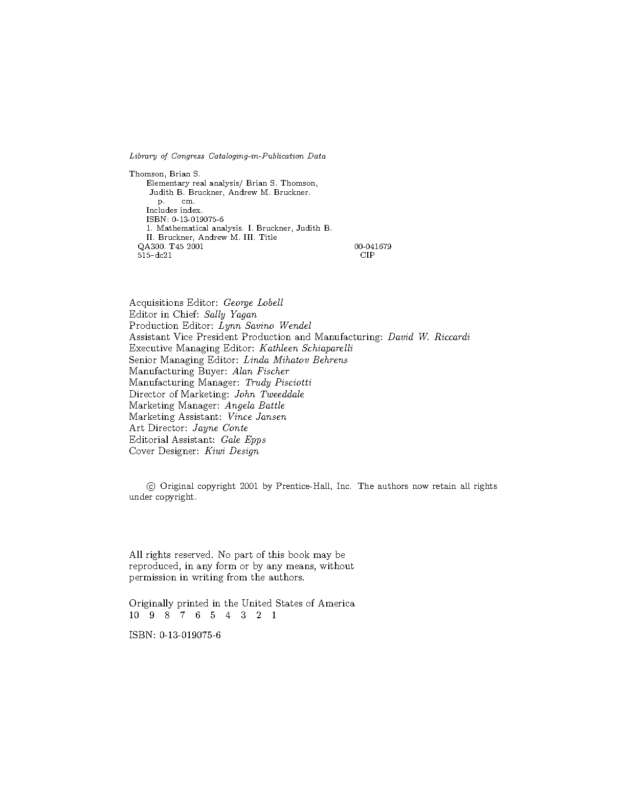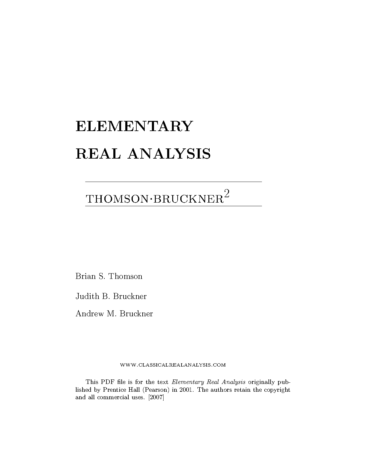Elementary Real Analysis, Second Edition (2008) by Brian S. Thomson, Judith B. Bruckner, and Andrew M. Bruckner