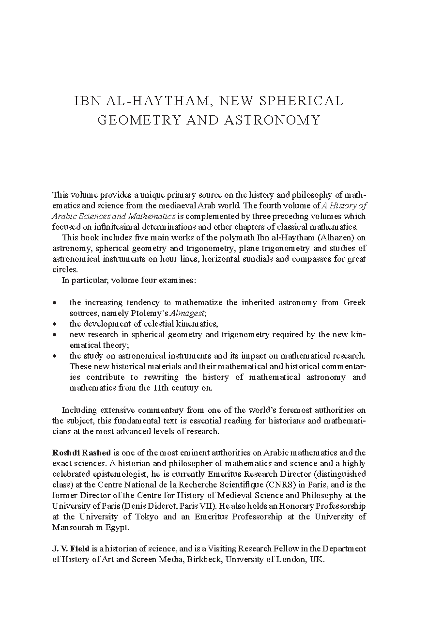 Dive into the fascinating world of Arabic sciences and mathematics with this insightful volume. Explore Ibn al-Haytham's groundbreaking contributions to spherical geometry and astronomy, meticulously translated by J.V. Field. A must-read for students and scholars alike.
