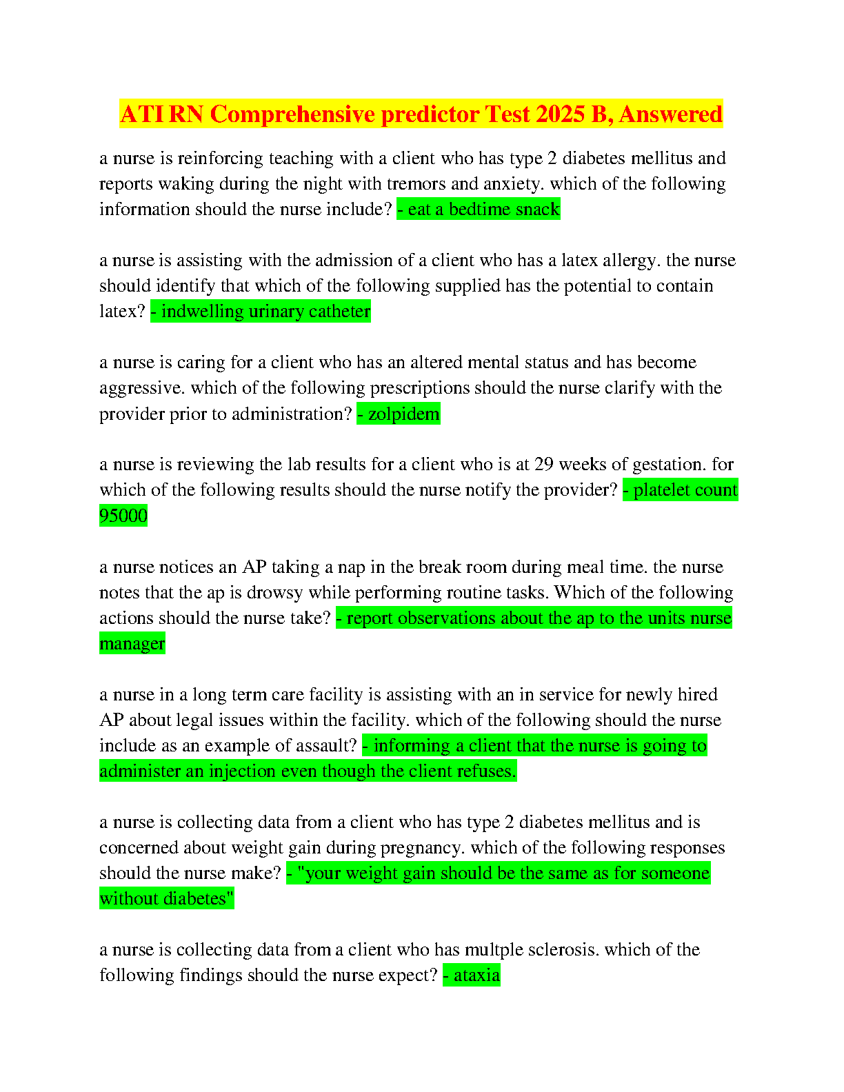 ATI RN Comprehensive Predictor Test 2025 B, Answered by [Author Names - Needs to be found online]