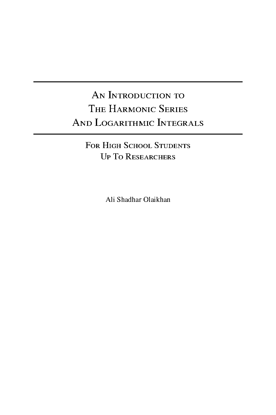 An Introduction To The Harmonic Series And Logarithmic Integrals by Ali Shadhar Olaikhan