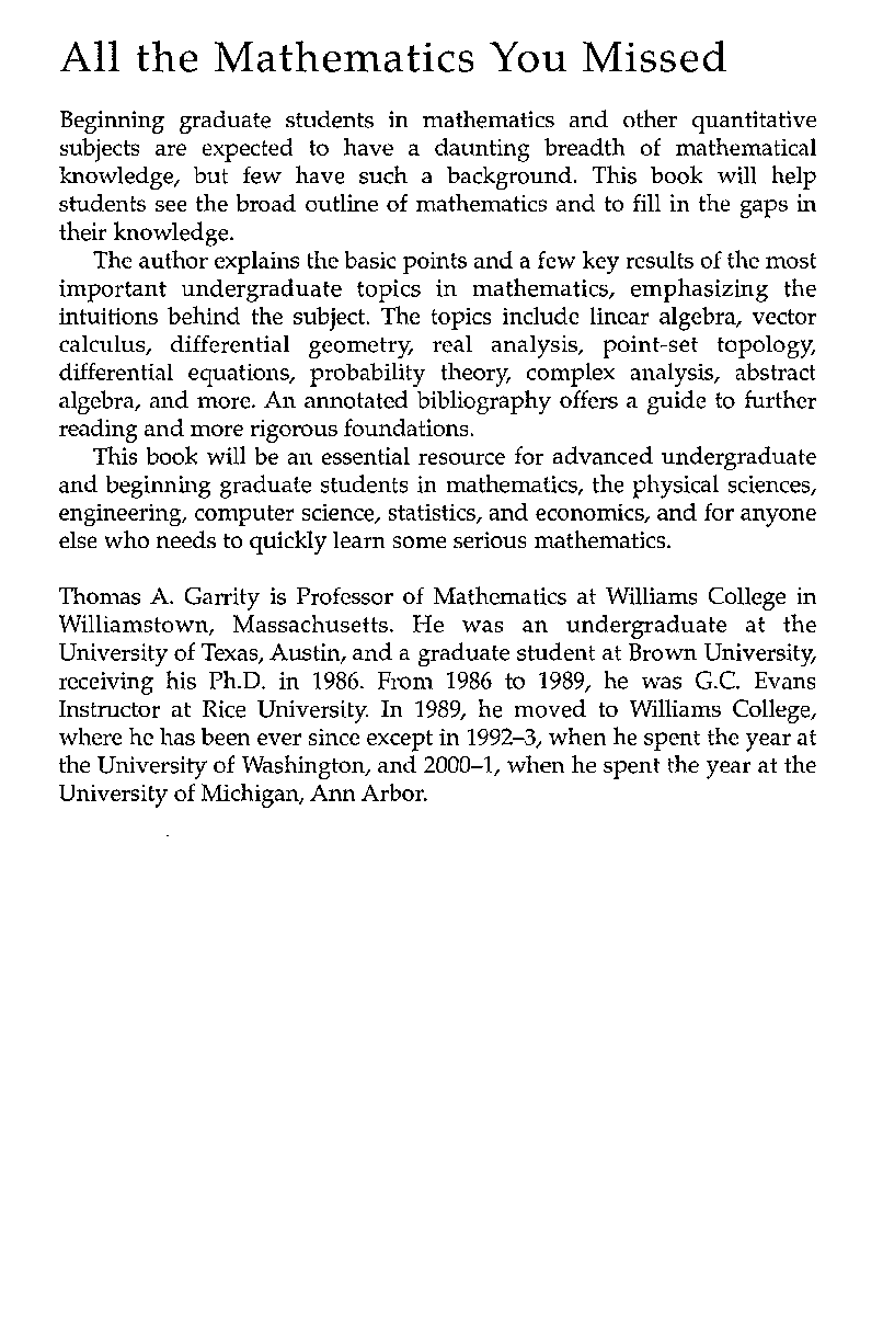All the Mathematics You Missed (But Need to Know for Graduate School) by Thomas A. Garrity