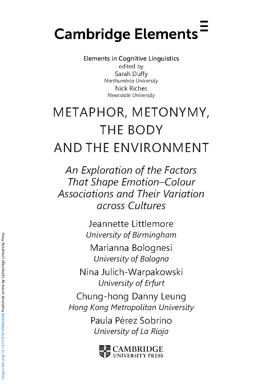 Cambridge Elements: Metaphor, Metonymy, the Body and the Environment by Jeannette Littlemore, Marianna Bolognesi, Nina Julich-Warpakowski, Chung-hong Danny Leung, and Paula Pérez Sobrino