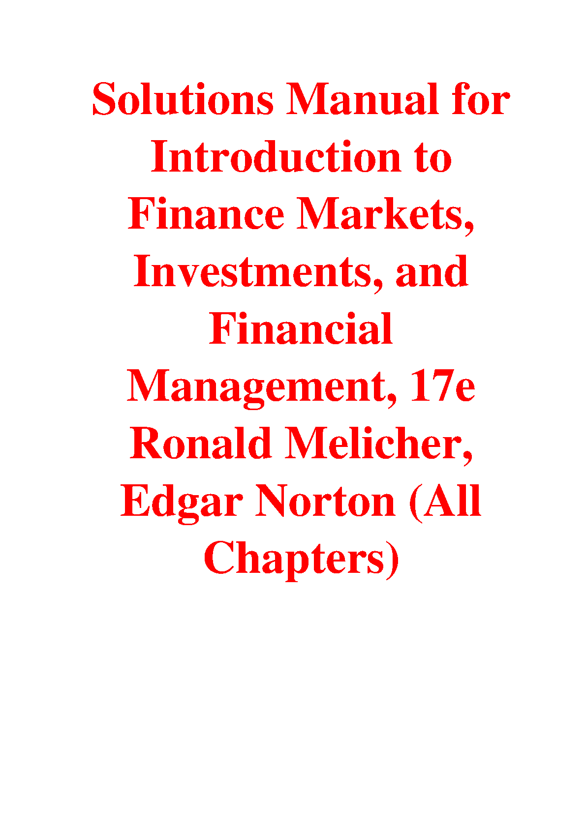 Solutions Manual for Introduction to Finance Markets, Investments, and Financial Management, 17th Edition by Ronald Melicher and Edgar Norton