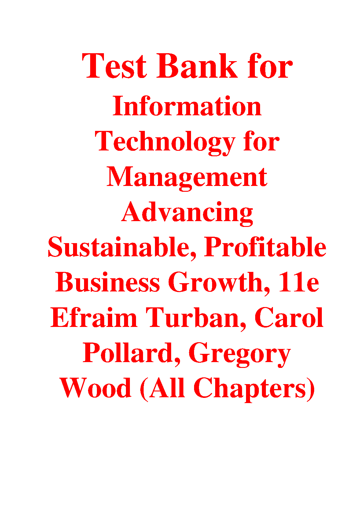 Test Bank: Information Technology for Management: Advancing Sustainable, Profitable Business Growth, 11th Edition by Efraim Turban, Carol Pollard, and Gregory Wood