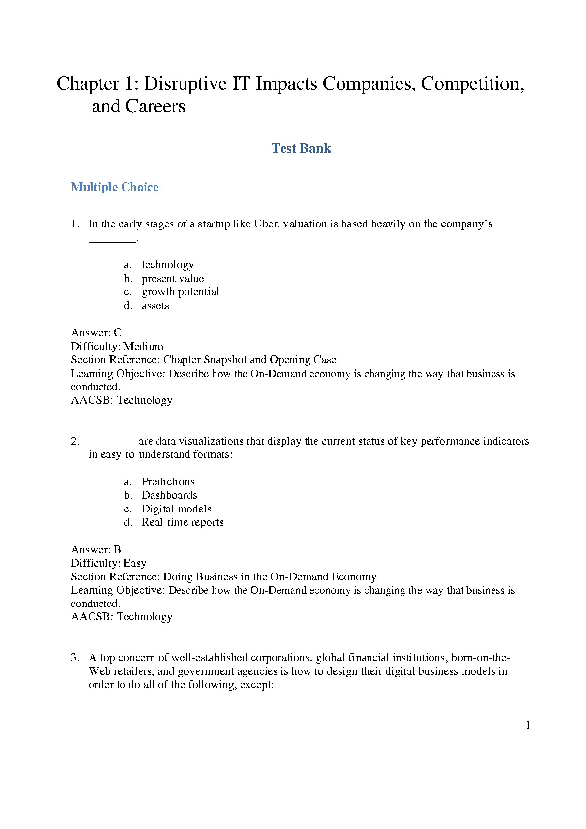 Ace your Information Technology for Management exams with this comprehensive test bank covering all chapters of the 11th edition by Turban, Pollard, and Wood. Ensure first-attempt success and avoid resits!