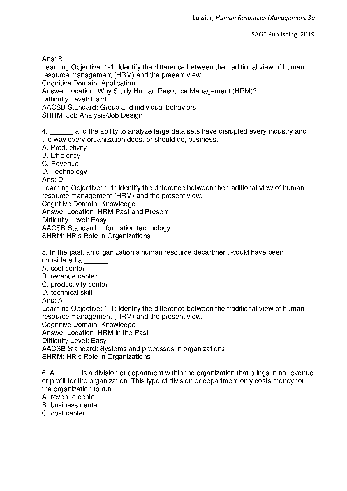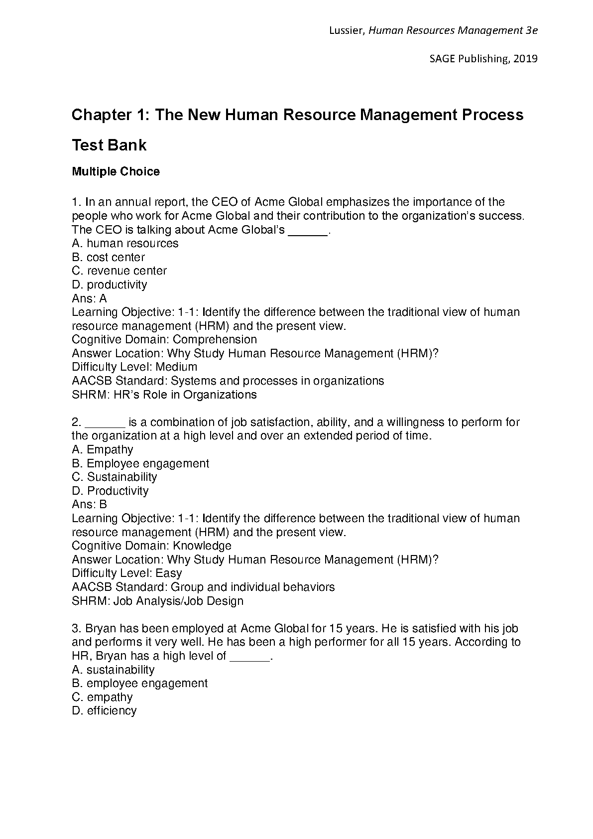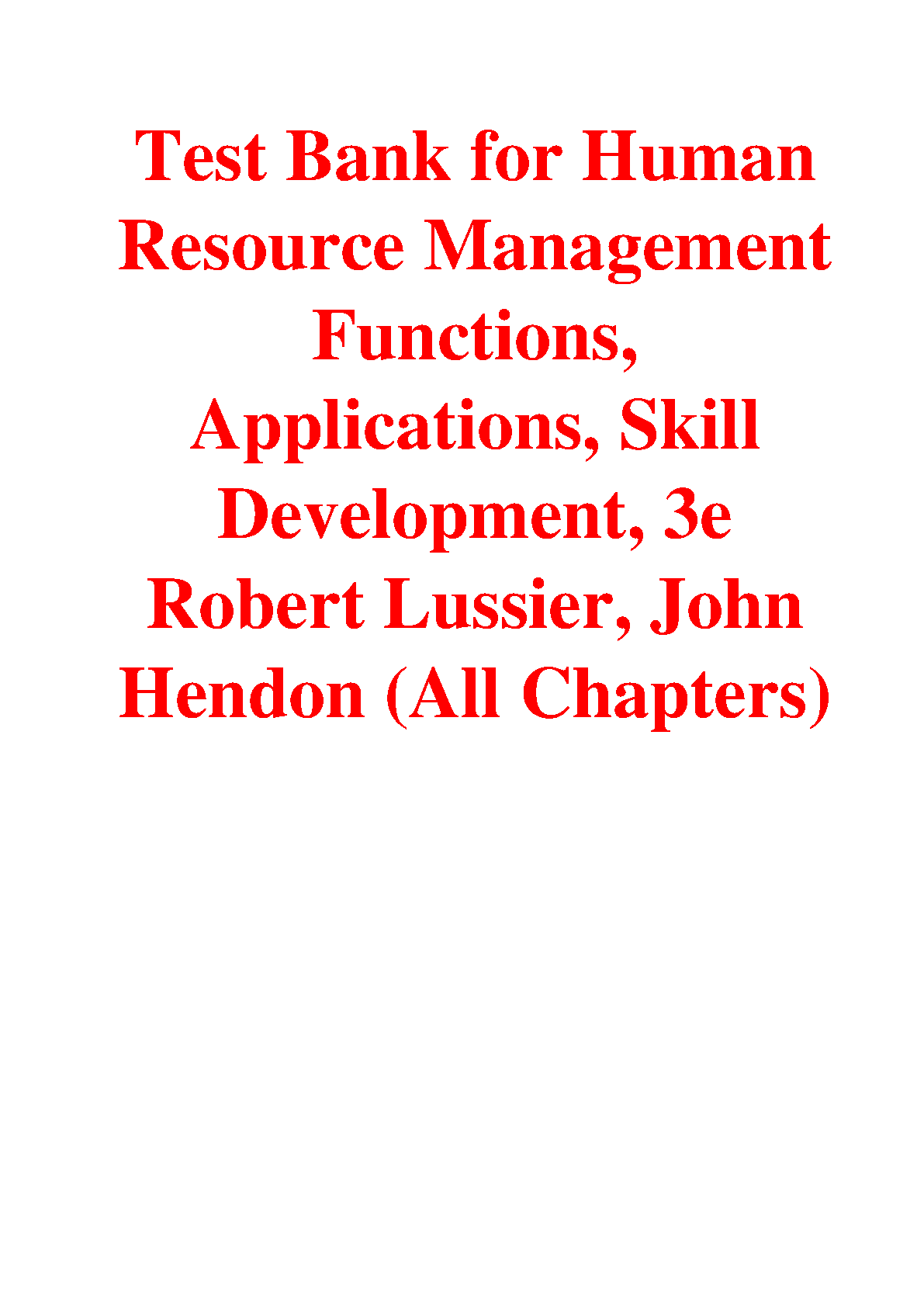 Access the complete test bank for Lussier and Hendon's Human Resource Management: Functions, Applications, and Skill Development, 3e. This comprehensive resource provides instructors with a wealth of questions to assess student understanding of key concepts. Ideal for exam preparation, ensuring first-time success.