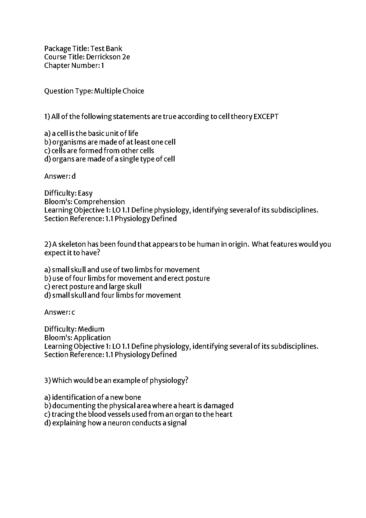 Access this comprehensive test bank for Human Physiology, 2nd Edition, by Bryan Derrickson and Kevin T. Tobin. Prepare effectively for exams and ace your human physiology course. This resource offers a wealth of questions to enhance your understanding and improve your exam scores.