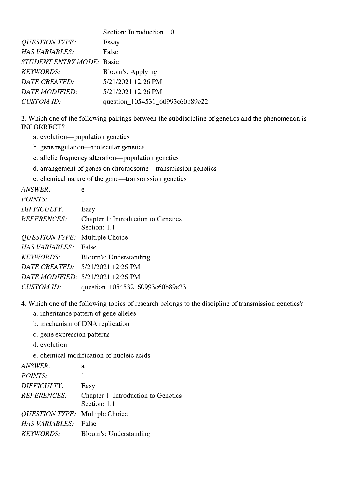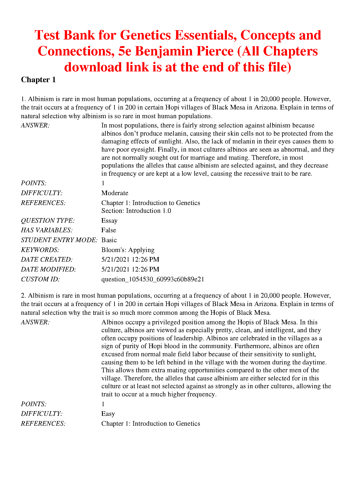 Genetics Essentials, Concepts and Connections, 5e Test Bank: Benjamin Pierce