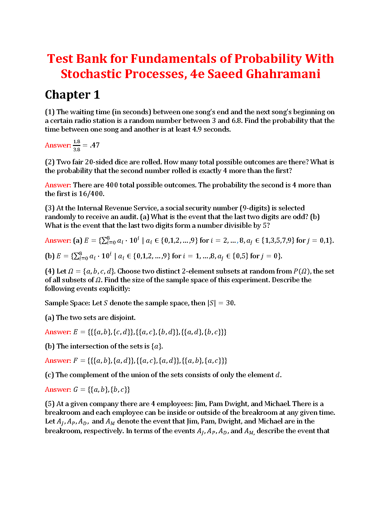 Ace your exams on the first try with this comprehensive test bank for Fundamentals of Probability With Stochastic Processes, 4e by Saeed Ghahramani. This resource offers in-depth practice questions and solutions, ensuring you master the material and avoid resits in the 2024/2025 academic year.
